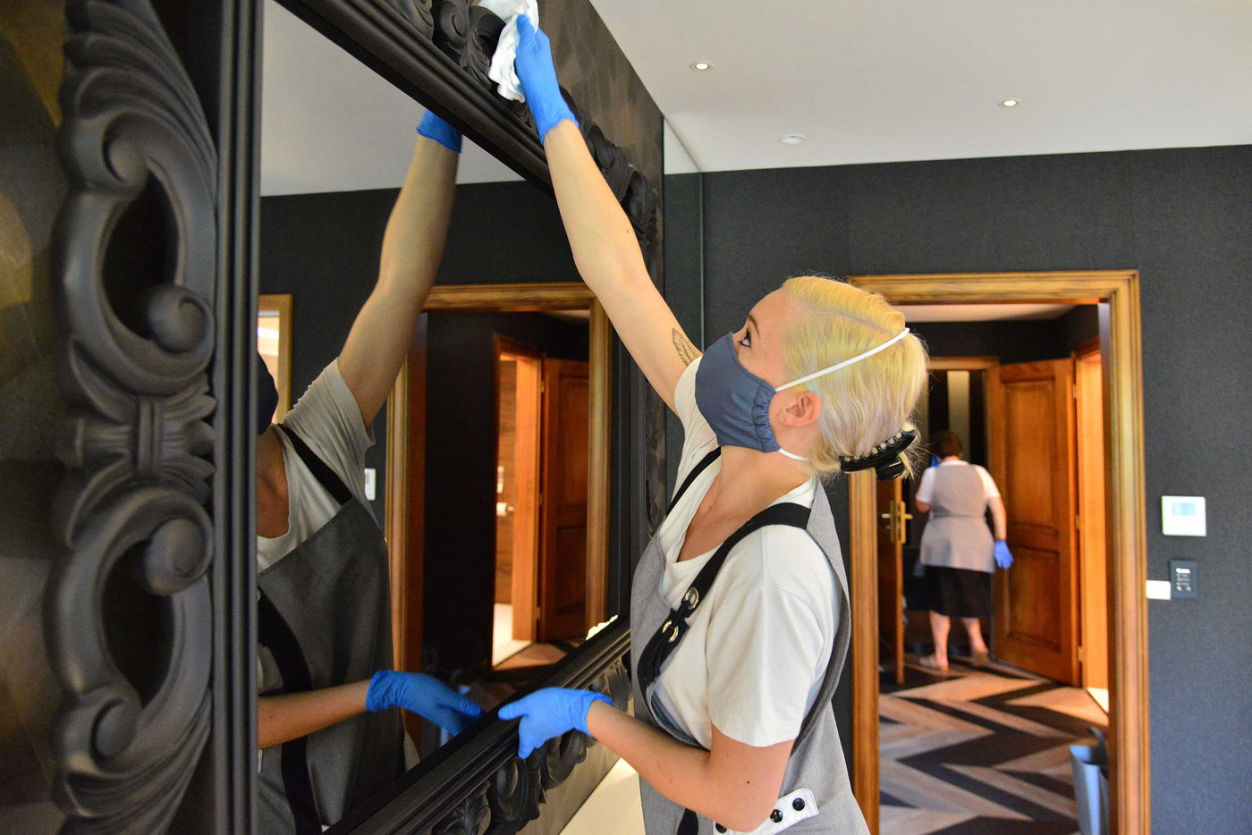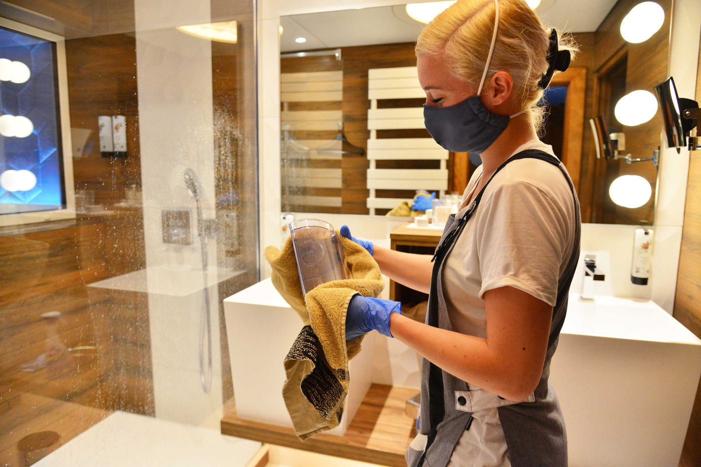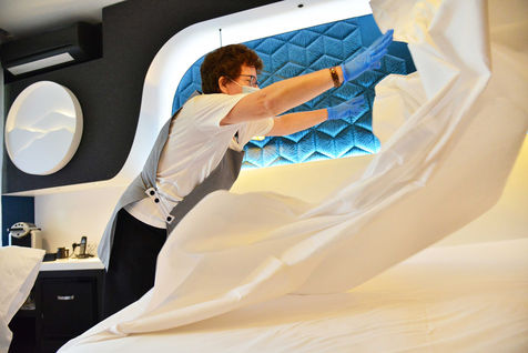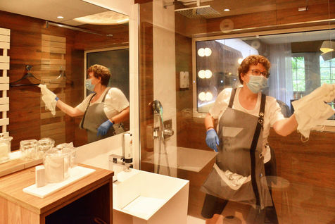 On June 13, 2020, hotels in France were able to welcome customers again after several months of confinement after the sector agreed to sign a charter insuring the health safety of customers and staff. From now on, making a room takes 15 minutes more for the maids because everything must be disinfected, from the door handles to the remote control of the television. Report in the Bas-Rhin, in the village of Colroy-la-Roche, at the Hostellerie La Cheneaudiere in June 2020.