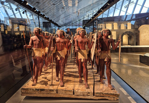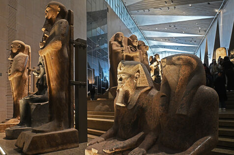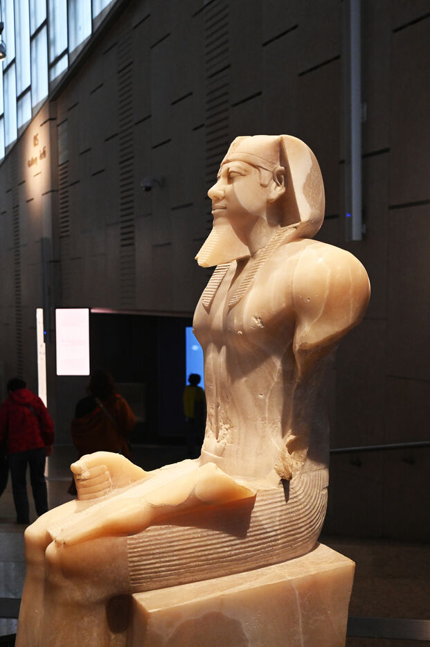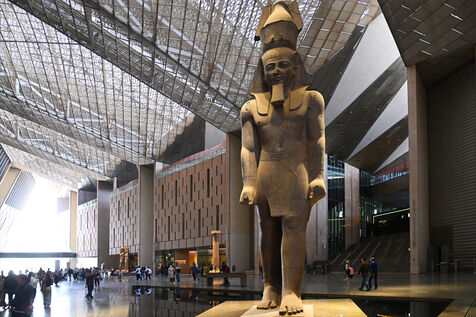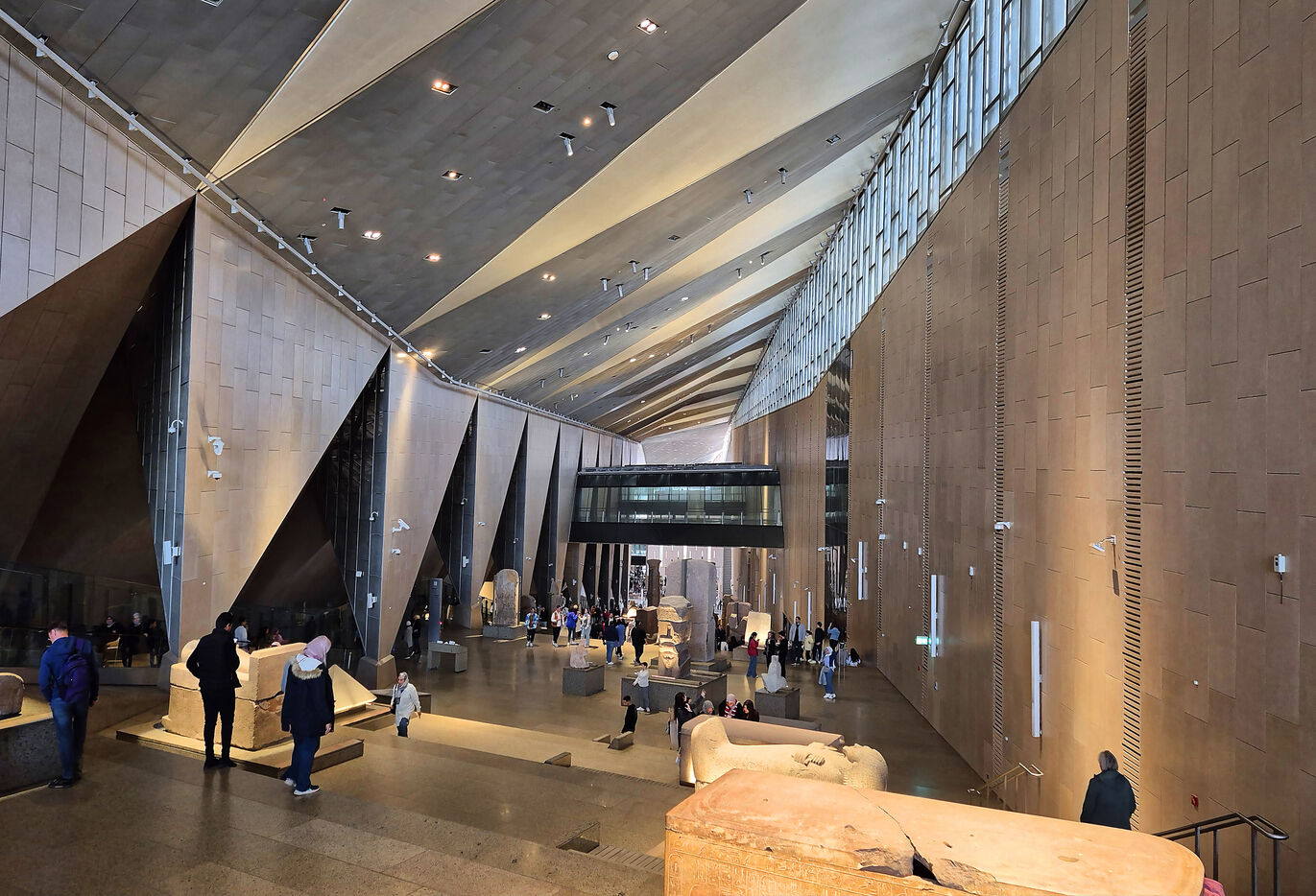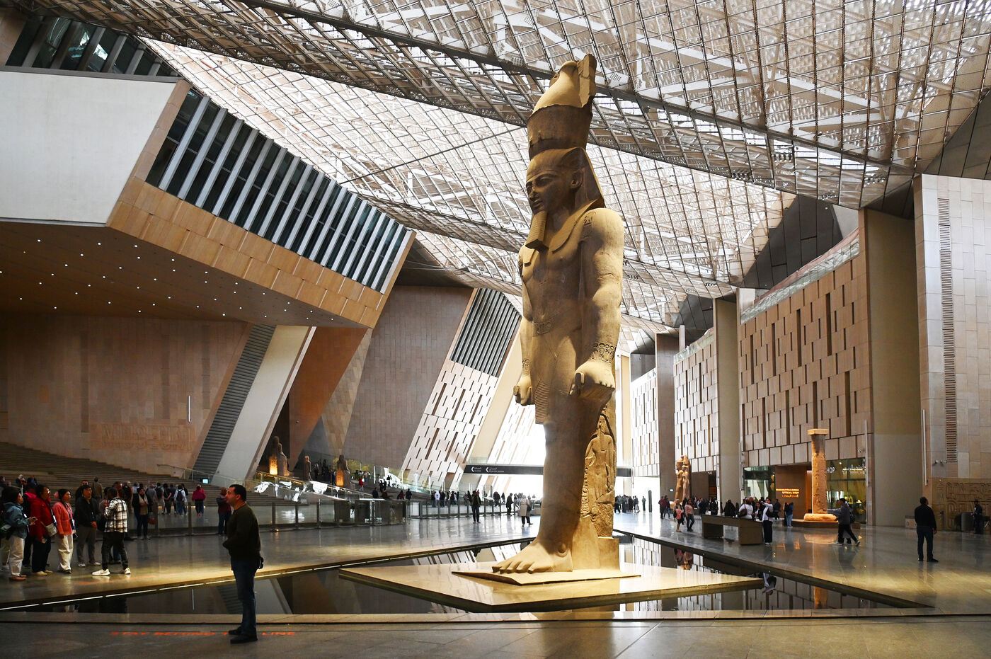 Devant l’impatience des amateurs d’égyptologie, le Grand Musée du Caire a ouvert ses portes aux visiteurs depuis l’automne dernier. La douzaine de salles, mises en scène par le bureau Atelier Brückner, retracent l’histoire égyptienne de l’âge de la pierre à Cléopâtre à travers plusieurs thématiques (« Terre d'Égypte », « Parenté et monarchie », « L'Homme, la société et le travail », « Religion et culture », « Scribe et savoir »). Ces salles sont accessibles via un grand escalier central parsemé de centaines de statues présentées par ordre chronologique. Au total, les 500 000 m² du GEM devrait accueillir plus de 130 000 pièces provenant des divers musées et sites archéologiques égyptiens. Il est également prévu que le grand musée accueille les momies royales et le trésor des tombes royales de Tanis.Dans le hall d’entrée du musée, le colosse de Ramsès II, avec ses 11 mètres de hauteur pour un poids de 100 tonnes, est comme le gardien de ce nouveau temple de l’archéologie égyptienne.
