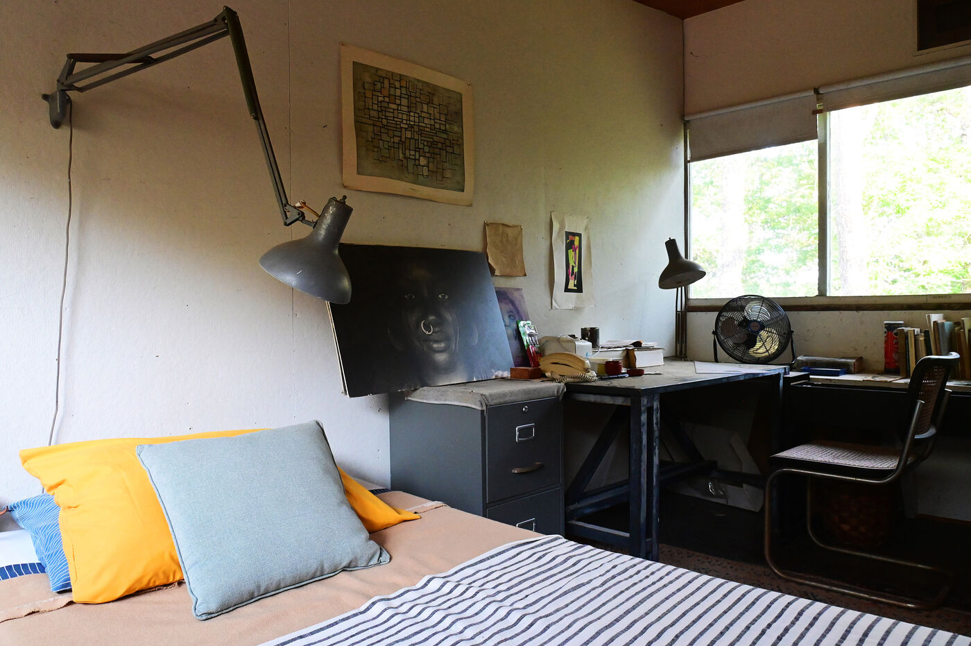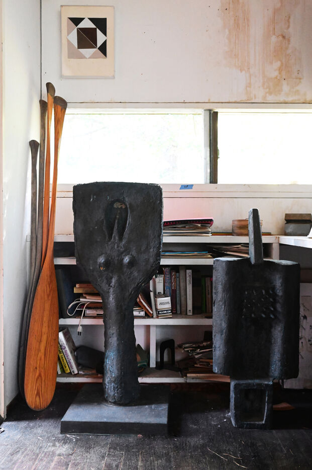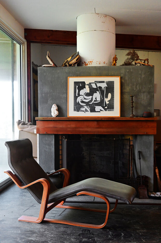 The setting inspires Breuer who, like Walter Gropius, founder of the Bauhaus school, believes that a healthy lifestyle involves harmony between the built world and the natural environment. Houses must have the minimum impact on the landscape, blending in with it. Due to lack of financial means, Marcel Brueur's house was built with recycled materials and walls made of recycled paper, a technique called homasote. It takes the form of a rectangular box placed on stilts. A cantilevered screened deck juts out from the house “like a camera on a tripod,” says Breuer, which opens up views of the lakes below. The rooms are small and furnished with simple pieces built by Breuer, often from concrete blocks – brutalist architectural elements – which he stacks to make bedside tables, stools or table legs.