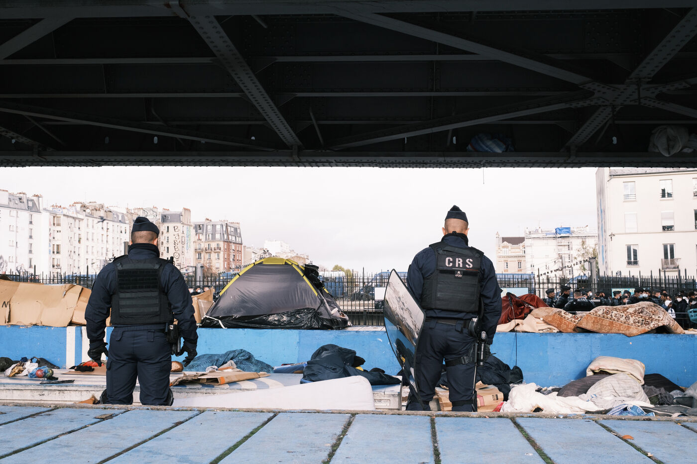 Evacuation of the camp of La Chapelle, under the orders of the prefecture of police, where nearly 900 people had been surviving for 4 weeks, in extremely difficult conditions. Buses chartered by the prefecture took 800 people to shelters as part of a "sheltering" operation. More than 150 people in exile were not taken in charge and remain without accommodation, forced to continue sleeping on the streets.