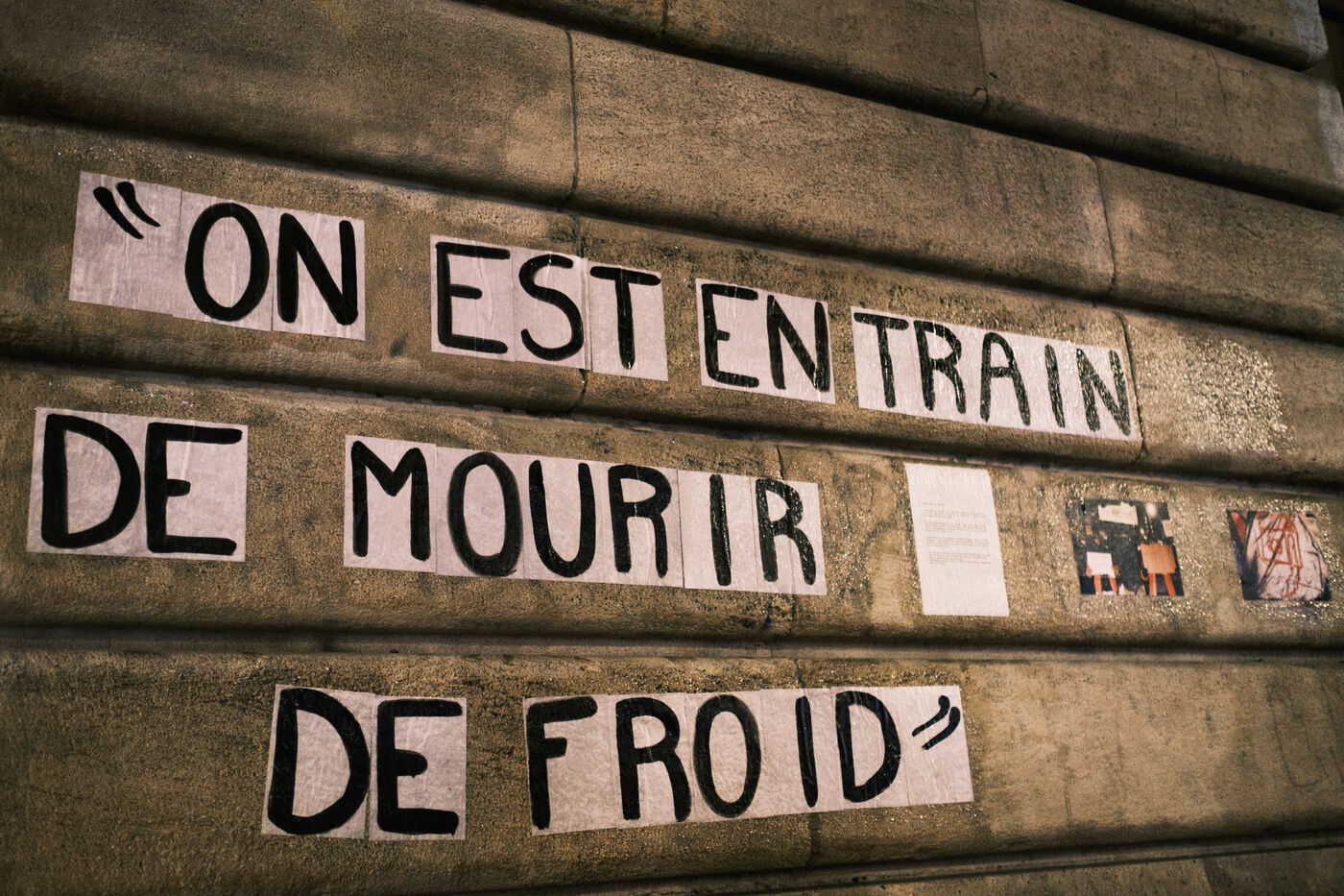 Ils survivent depuis des semaines dans des conditions extrêmement difficiles, entre des températures glaciales, un harcèlement policier quotidien, une épidémie de gale, aucun accès a l eau, l?interdiction d?allumer des feux pour se réchauffer et sans perspective de mise a l abri envisagée par la préfecture.