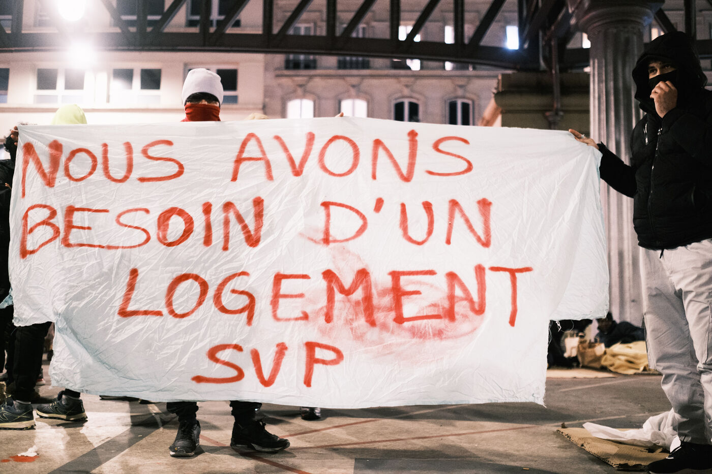 Between two "shelters" organized by the prefecture, several dozen exiled men, mostly Afghans, survive on the street under the Stalingrad metro bridge. They have no accommodation, even though French law stipulates that they should have access to it.