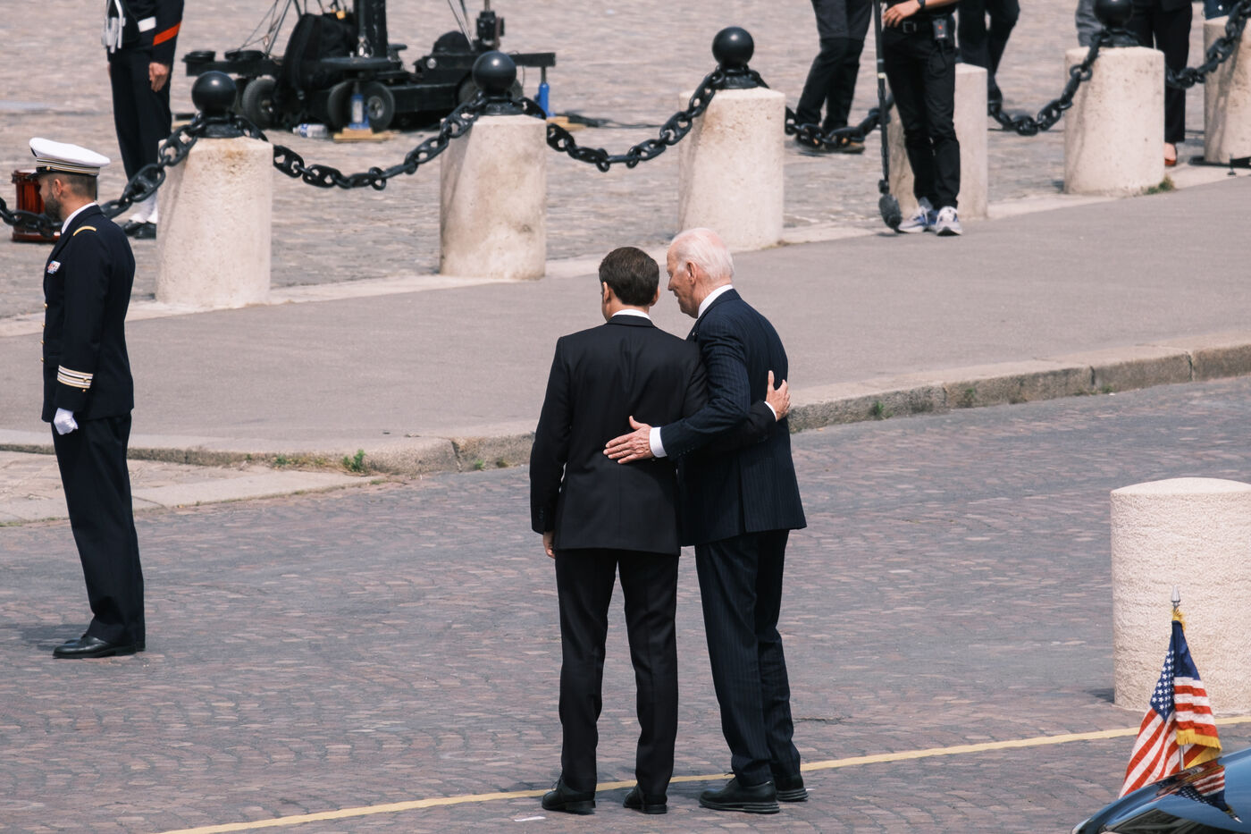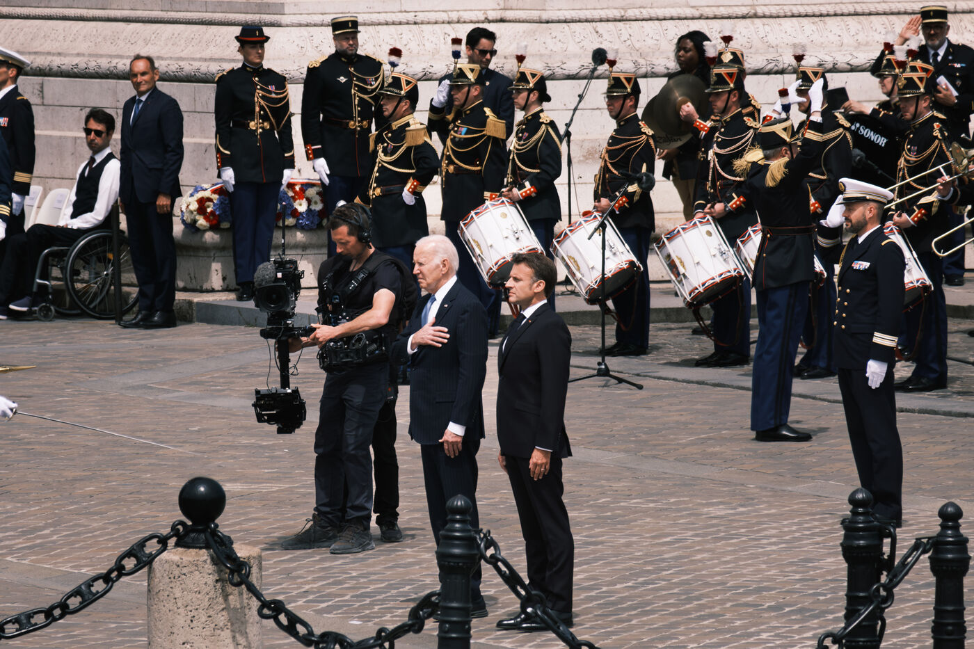 Pour sa première visite d'État en France, le Président des États-Unis d'Amérique Joseph Biden est reçu à Paris par le Président français Emmanuel Macron, et participe à la cérémonie du ravivage de la Flamme de la Nation sous l'Arc de Triomphe. L'année 2024 marque les 80 ans du débarquement en Normandie lors de la Seconde Guerre mondiale.