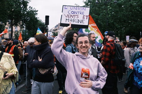 Manifestations à l'appel du Nouveau Front Populaire à l'approche des élections législatives faisant suite à la dissolution de l'Assemblée Nationale par Emmanuel Macron, pour appeler à voter pour l'union de gauche et faire barrage à l'extrême droite.