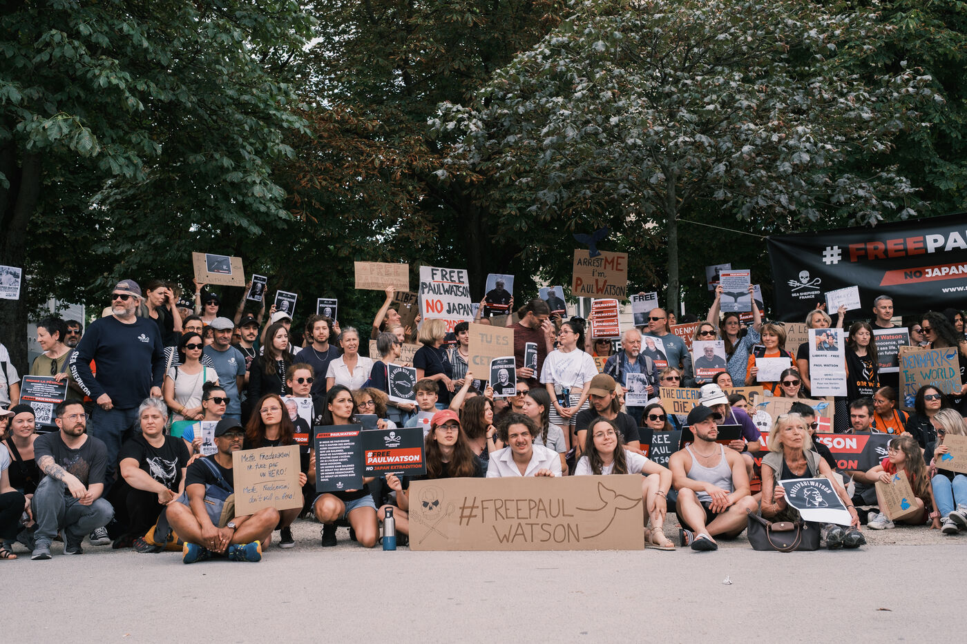 Rally in support of whale activist and founder of the NGO Sea Shepherd Paul Watson, detained in a Greenland prison for his activist activities.