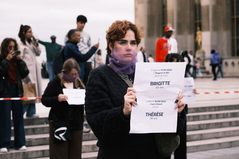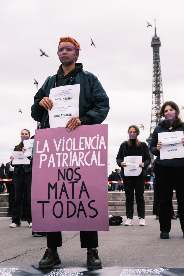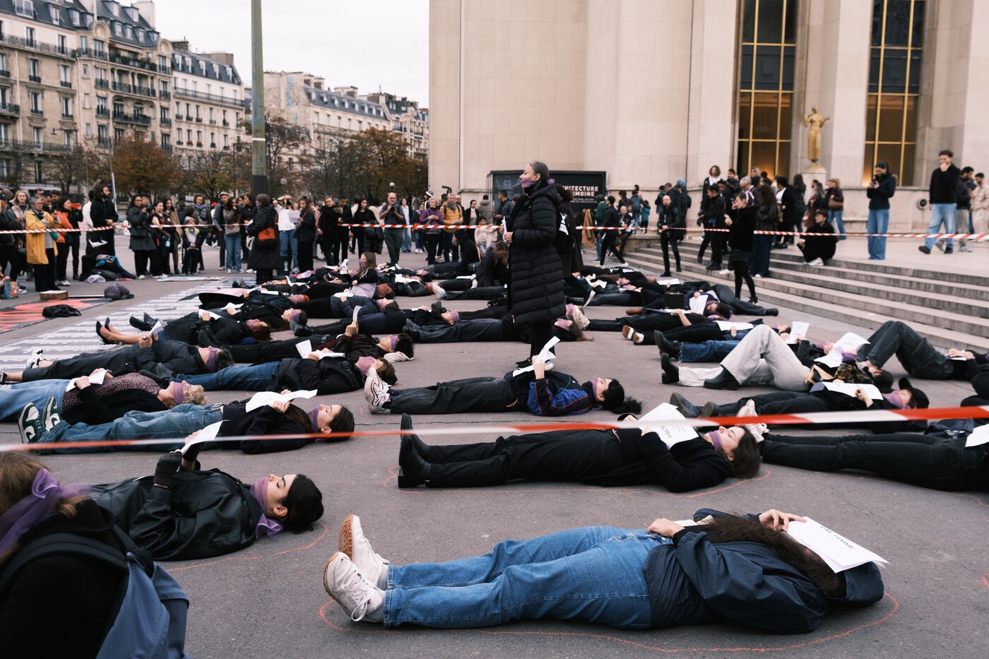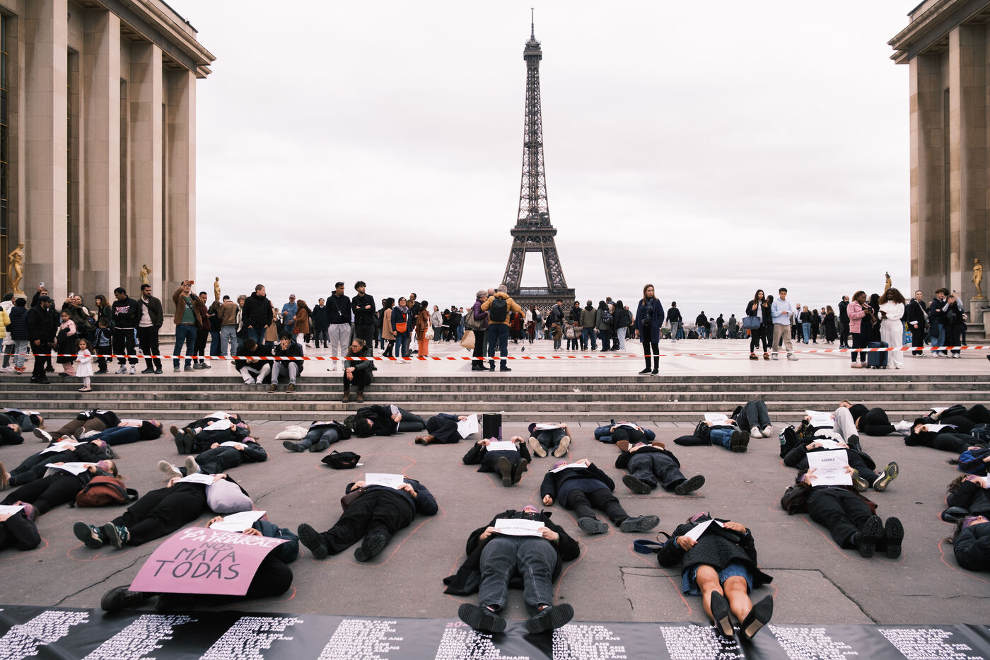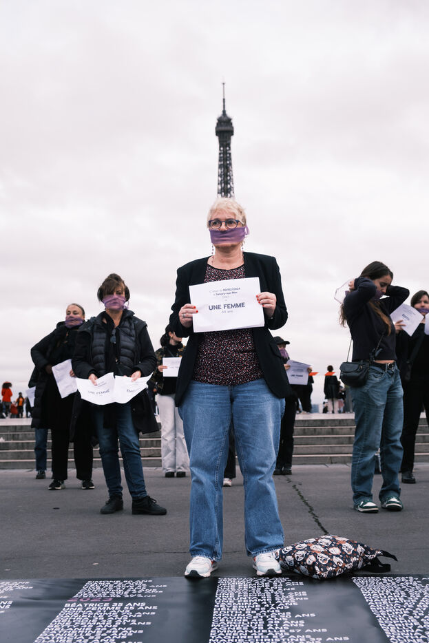 Action by the feminist collective “Nous Toutes” in denunciation of the 1,000 victims of feminicide since the Macron presidency, against the impunity of violent men and in tribute to the victims.