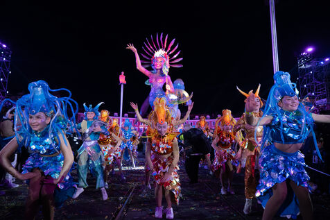 Cette année le Carnaval à comme but de mettre en avant les derives qui mette en danger nos Océans. Les chars sont décorés avec des thèmes qui dénonce la pollution des eaux ou des personnages comme Trump ou Cousteau.
