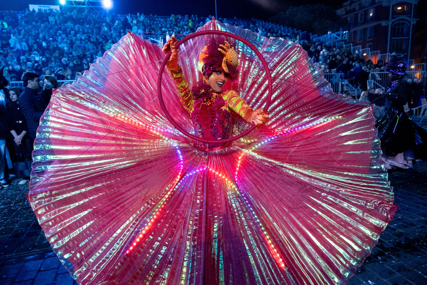 This year's Carnival aims to highlight the dangers to our oceans. The floats are decorated with themes that denounce water pollution or characters like Trump or Cousteau.