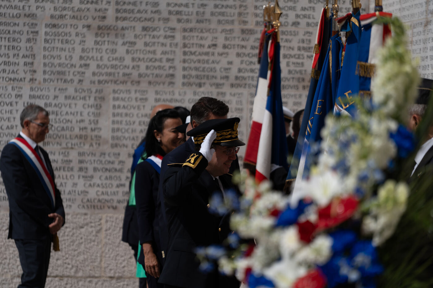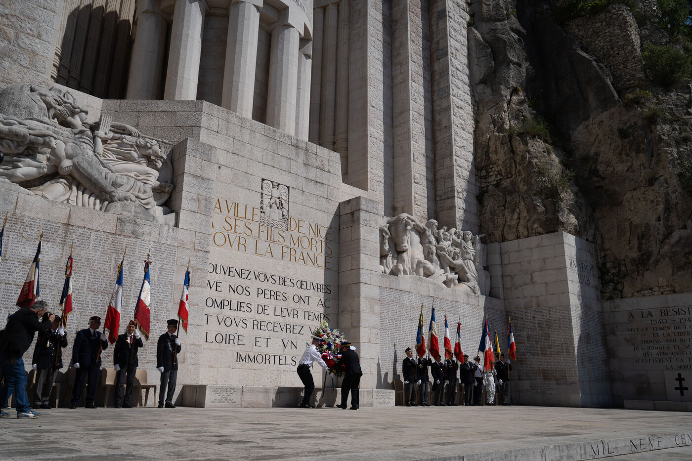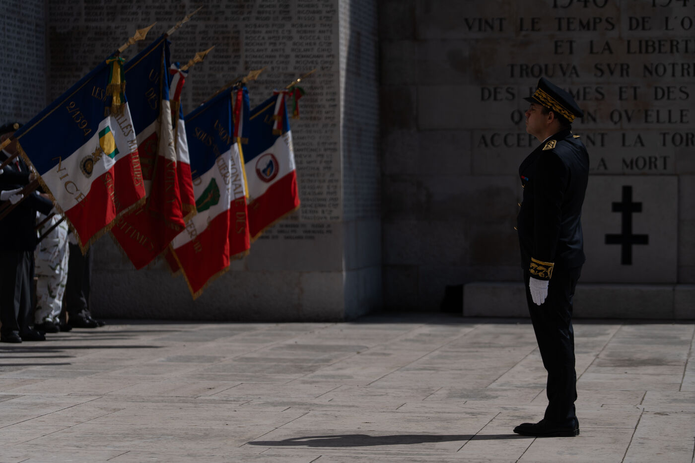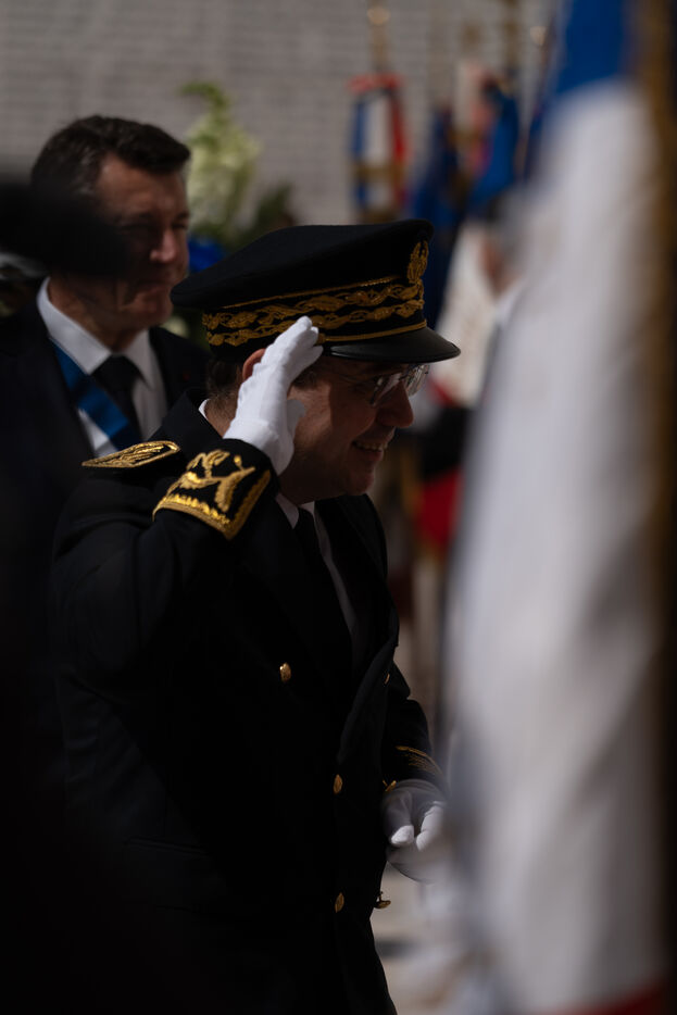 Laurent Hottiaux remet une gerbe au monument aux mort et se presente devant les différentes institutions locales pour sa prise de fonction comme préfet des Alpes Maritimes.