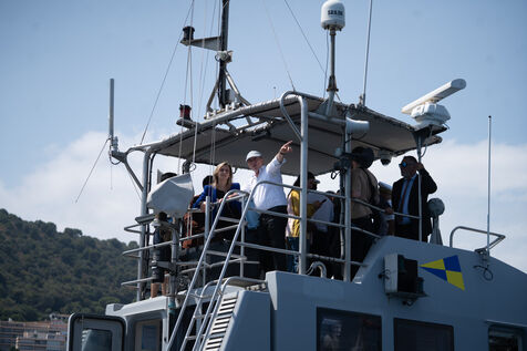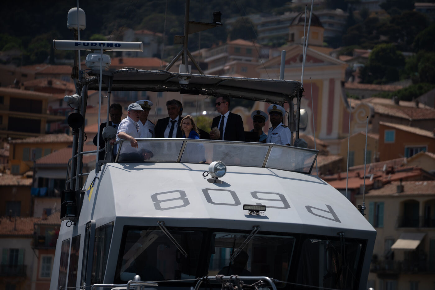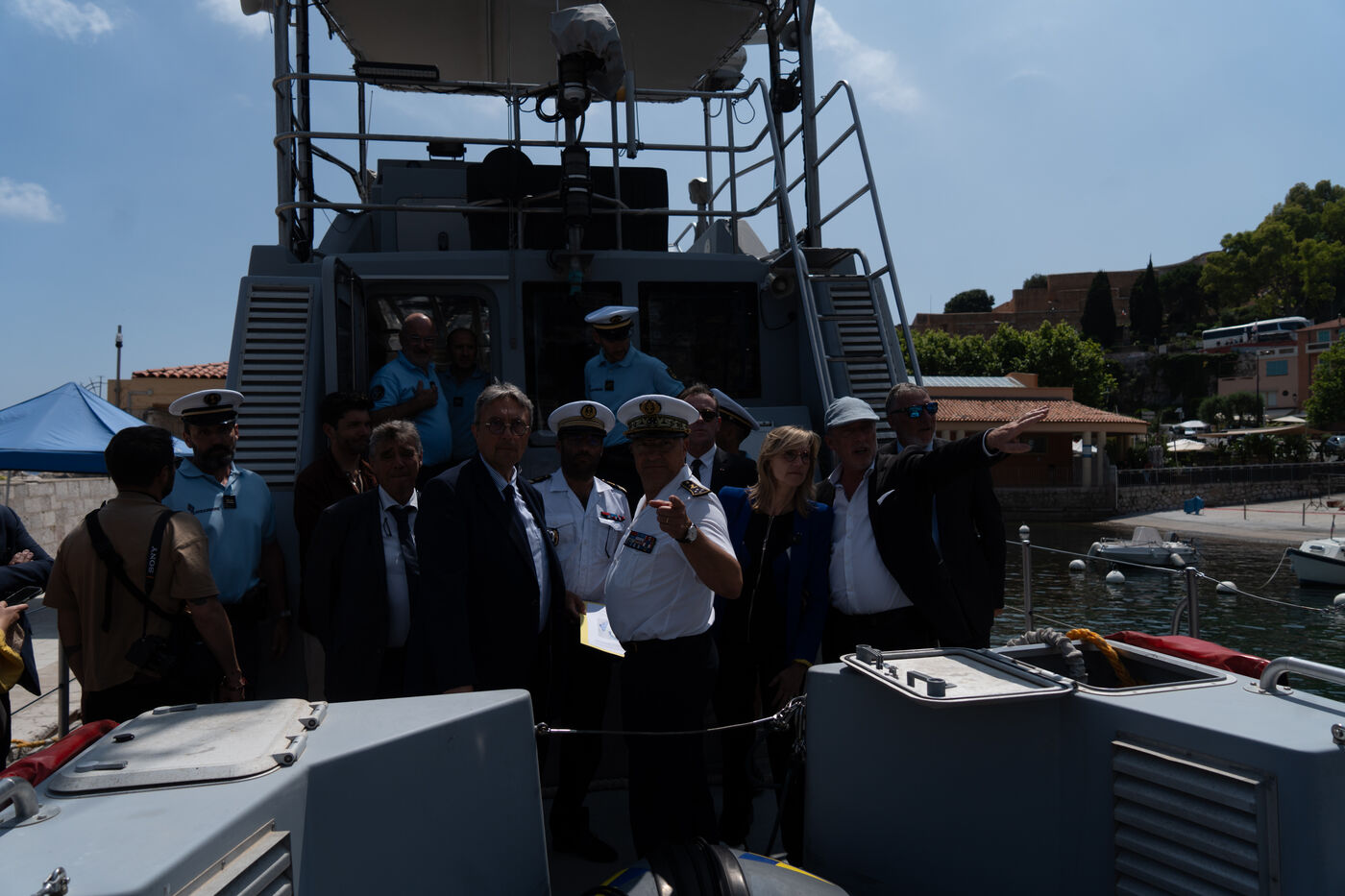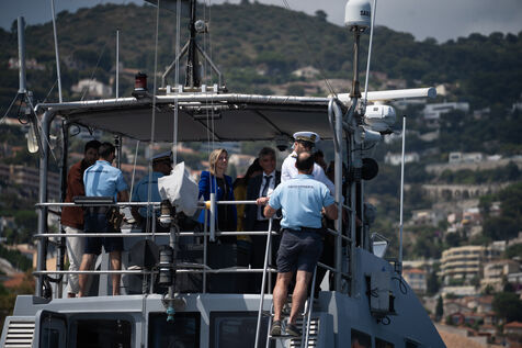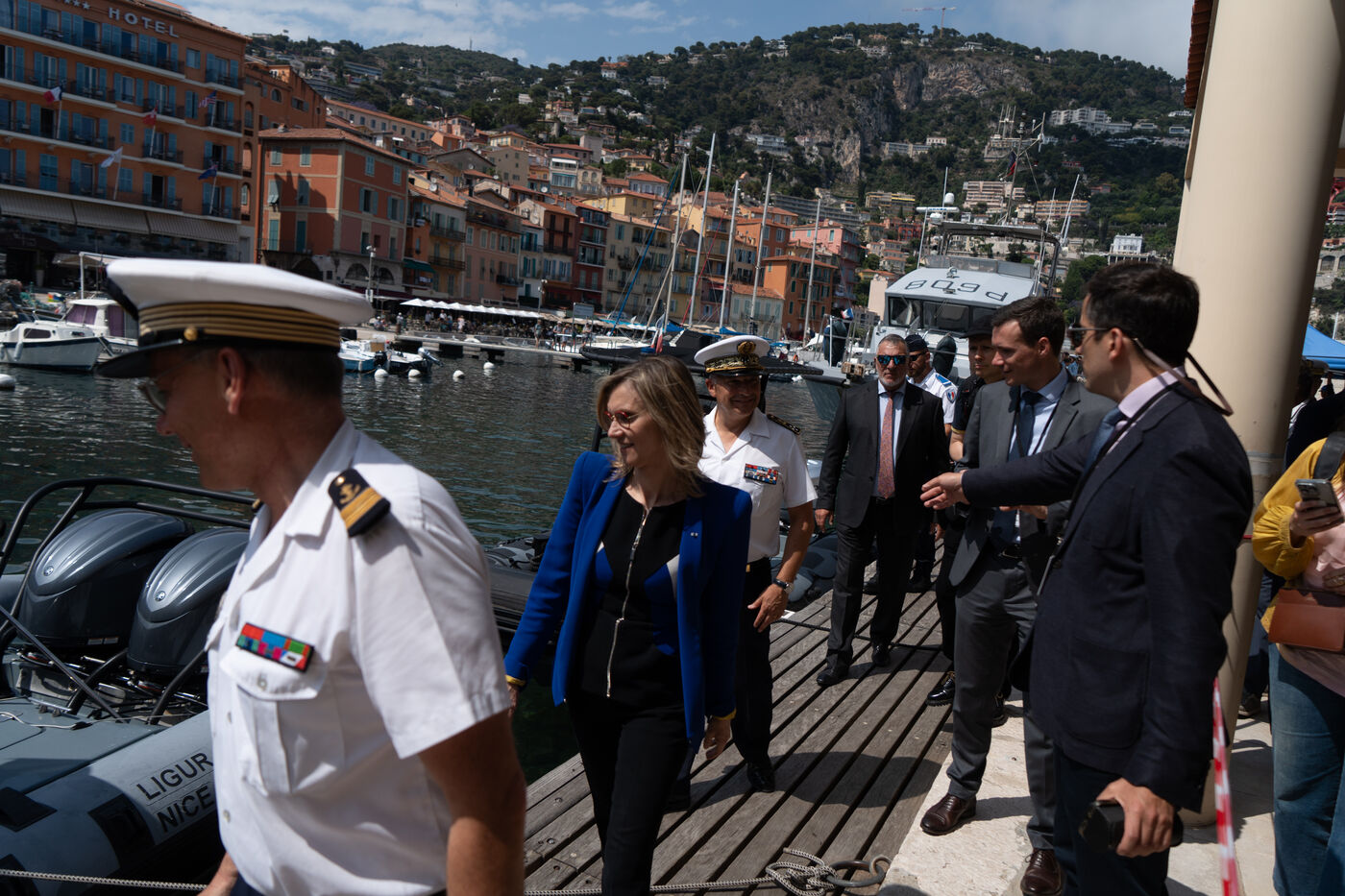 Minister for Ecological Transition Agnes Pannier Runacher visits Villefranche-Sur-Mer. Exhibitions of the safety system and maritime installations.