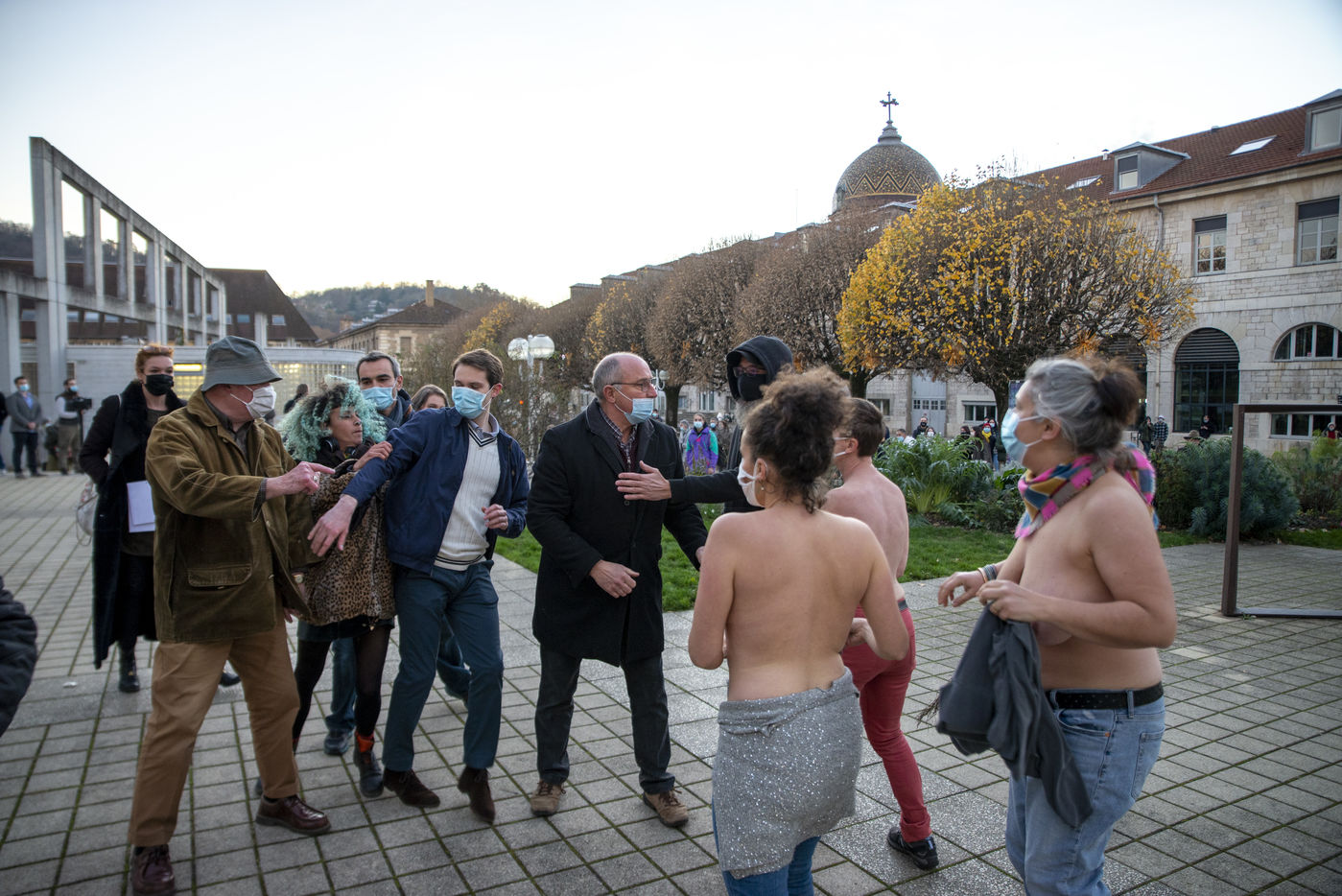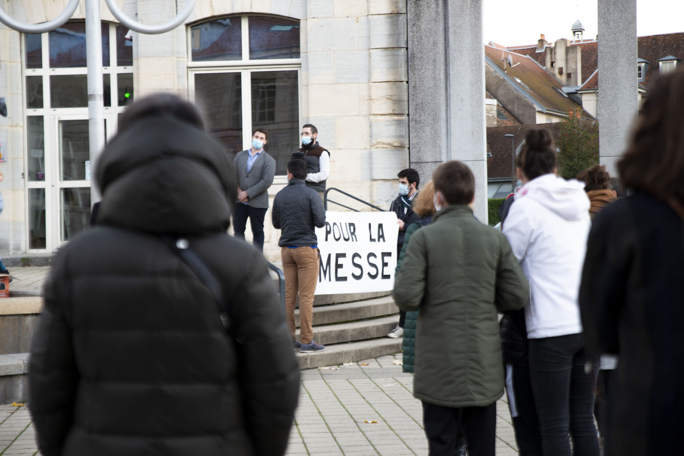 On the afternoon of 21 November, after two demonstrations, one against the Global Security Law and another against violence against women, a small group of Catholic faithful met on the square in front of Besançon town hall to pray together and ask for the reopening of masses.