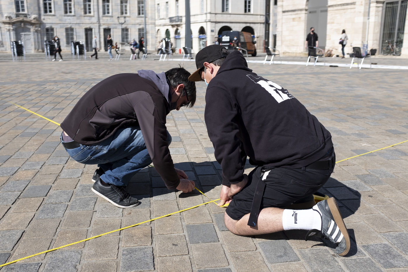 The participants remained seated for about fifteen minutes, the time for the organisers to obtain images, to put the future restrictions into practice, and to reflect the impossibility for them to evolve under these restrictions.
