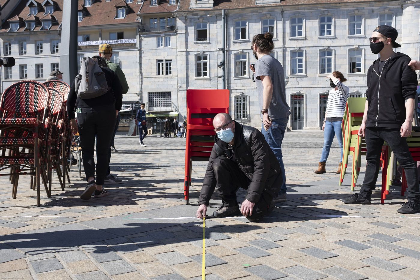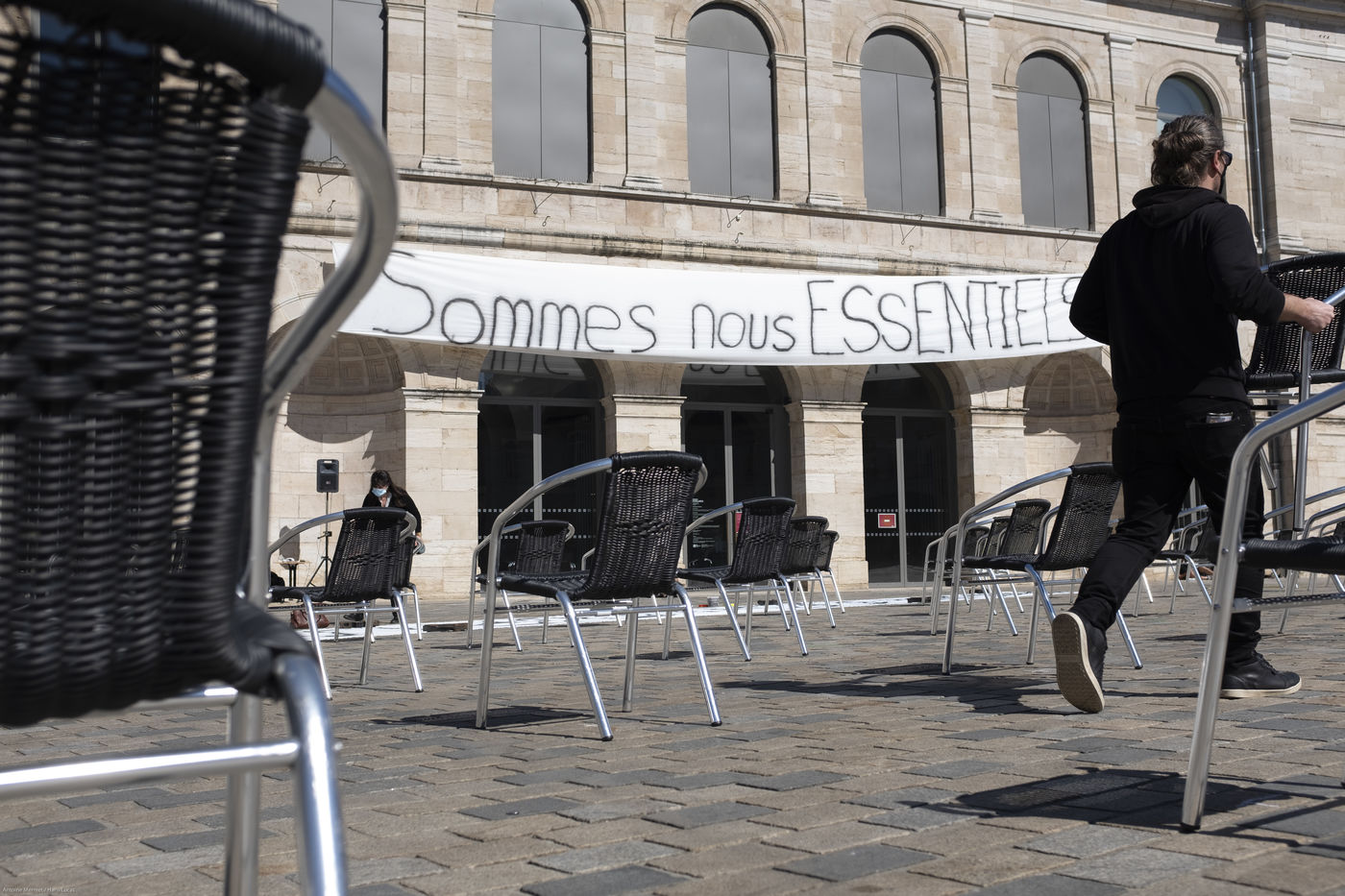 Les organisateur.rice.s se sont coordonné.e.s pour installer 196 chaises en veillant à respecter les mesures que le gouvernement a prises pour la future réouverture des salles et festivals.