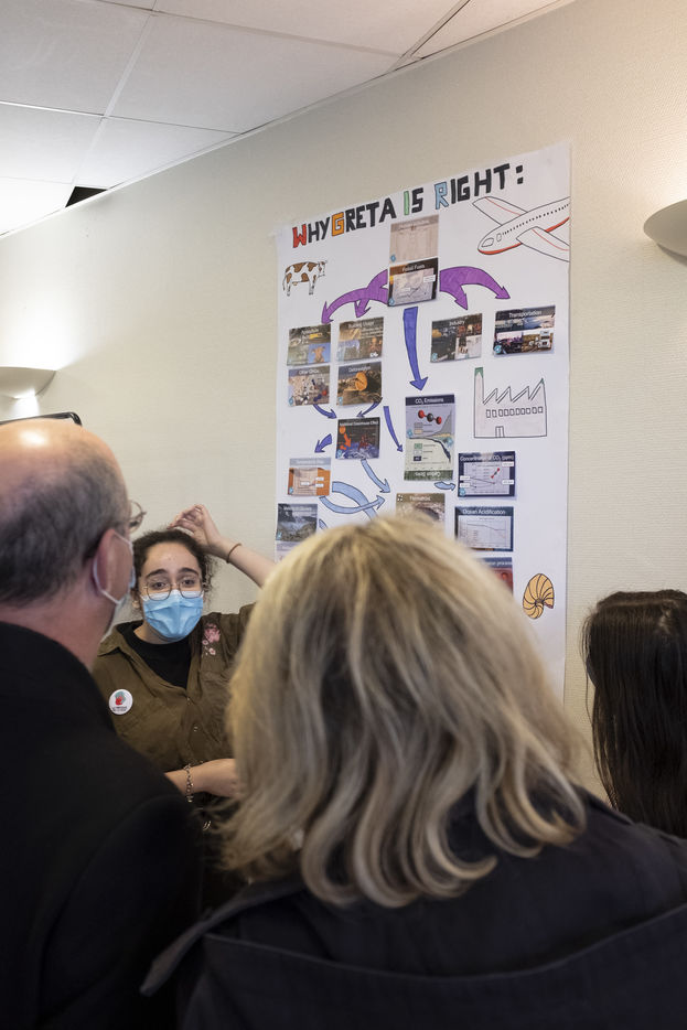 At the high school, after discussions with students about the "Fresque pour le climat" project, a framework agreement was signed between the two ministries to "accelerate the deployment of education for sustainable development throughout the country".