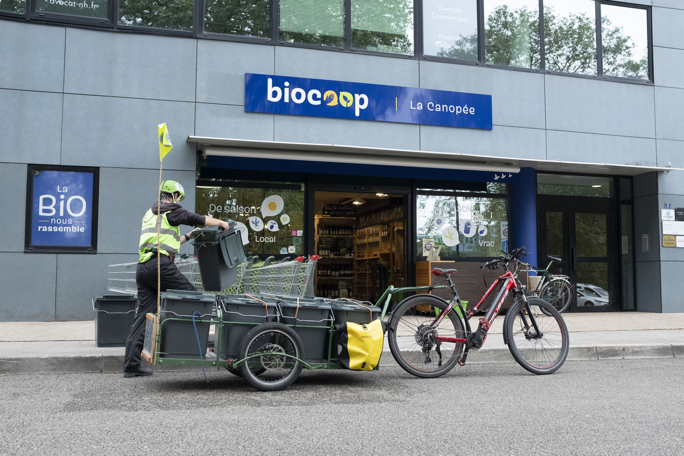 Sous le nom Cycl'ompost et habillés en vert, 3 fois par semaine ils collectent à vélo les bacs.