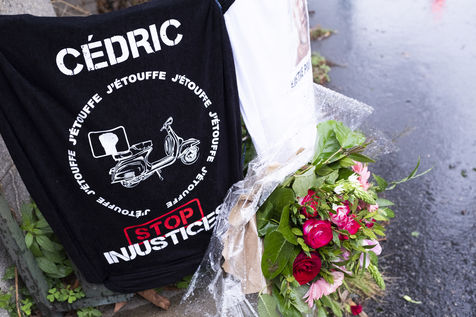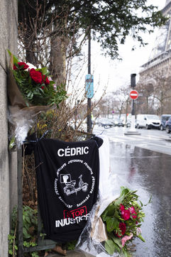 Two years after Cedric Chouviat's violent interpellation, flowers and two t-shirts were left at the scene of the interpellation.