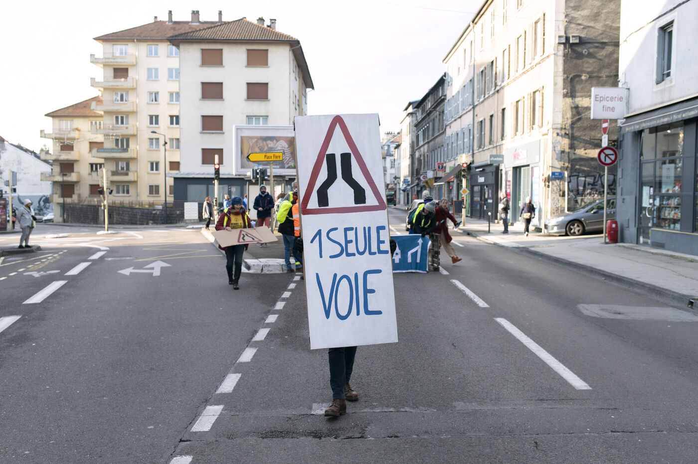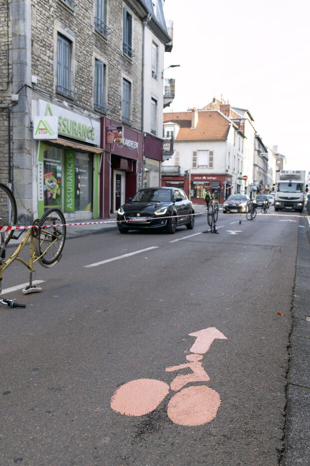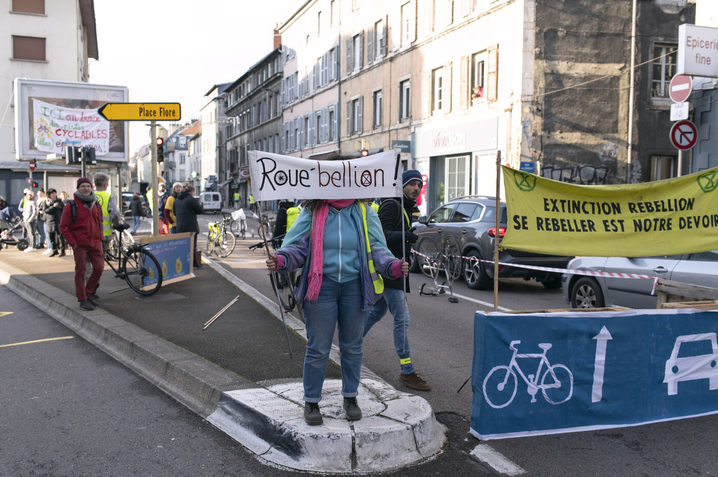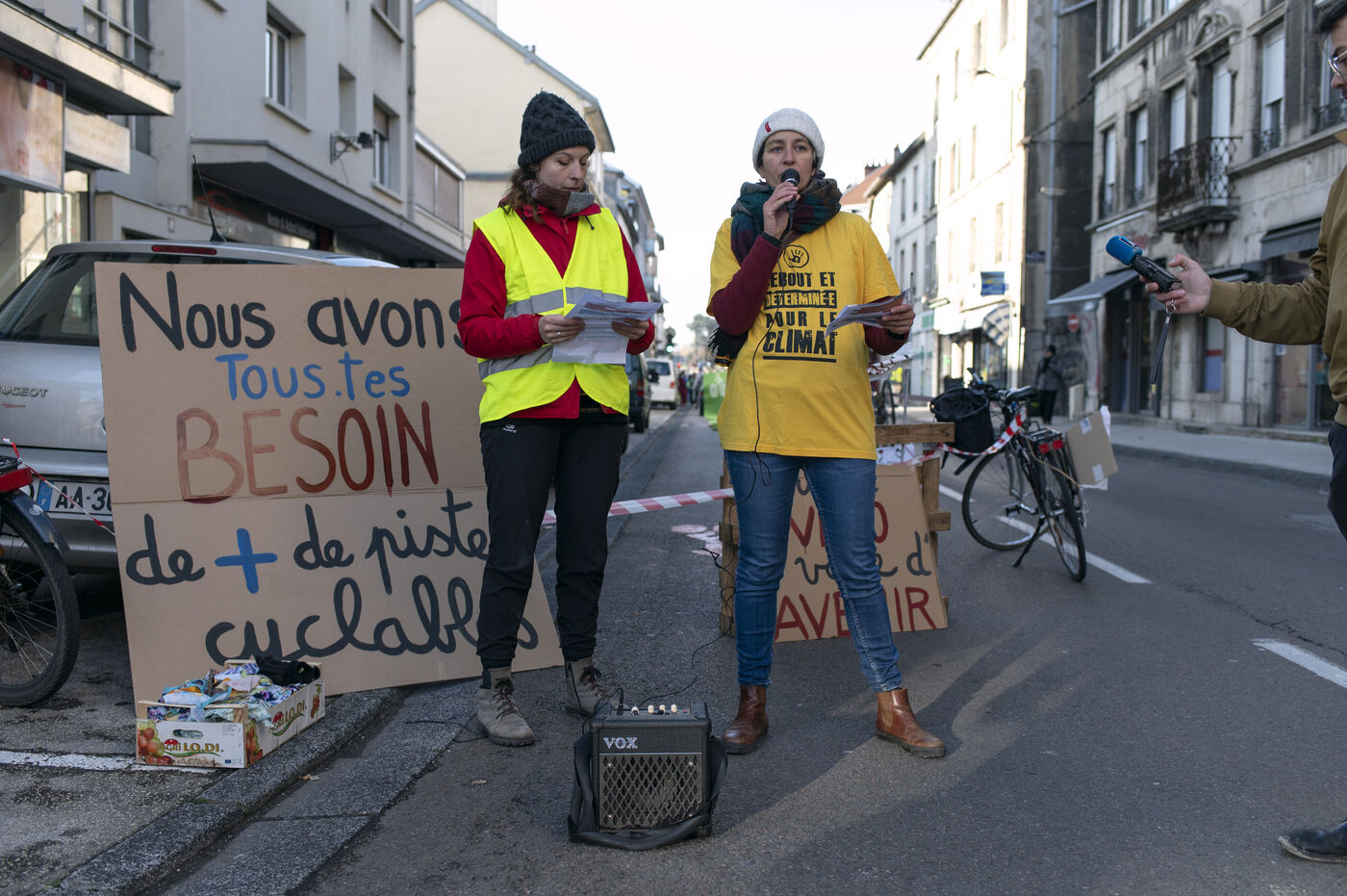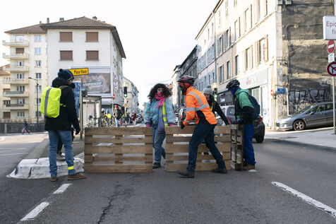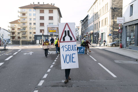 On Saturday 3 December 2022, for one and a half hours, about fifty activists involved in the climate movement in Besançon temporarily blocked part of a busy road to create a cycle track.