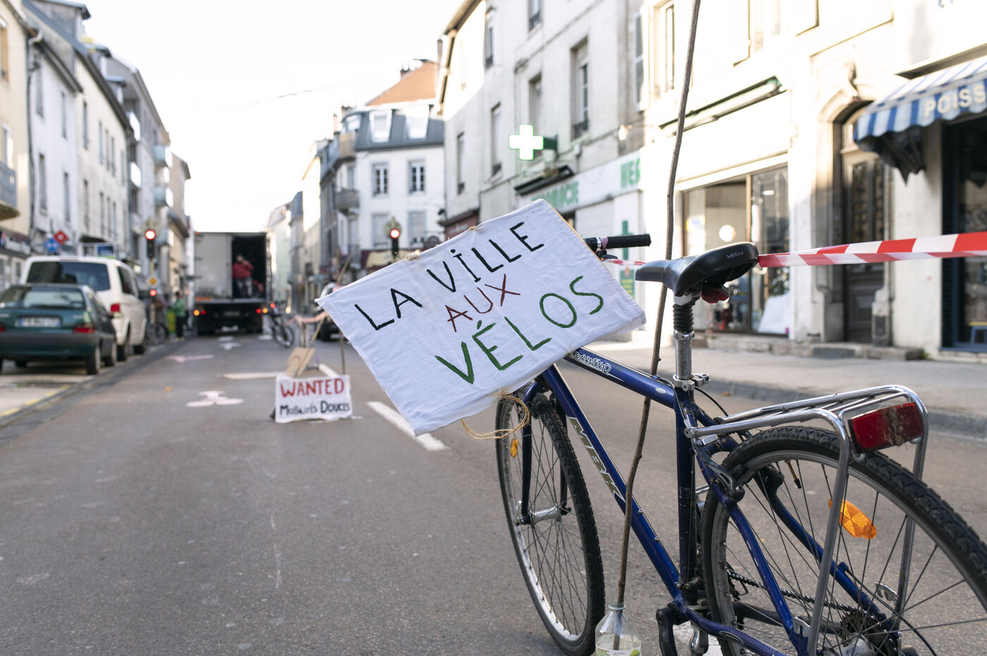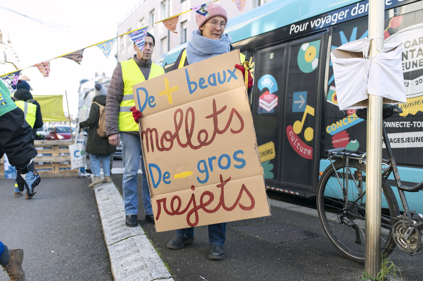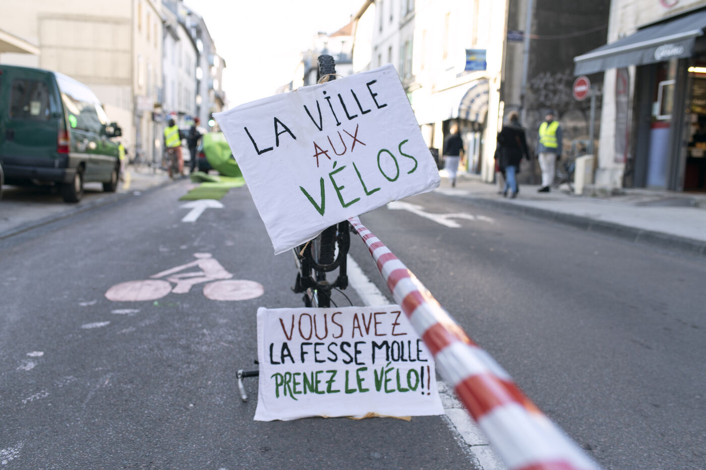 On Saturday 3 December 2022, for one and a half hours, about fifty activists involved in the climate movement in Besançon temporarily blocked part of a busy road to create a cycle track.