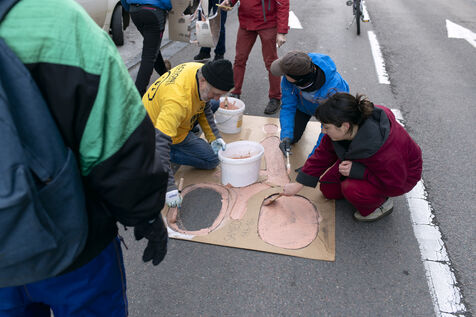 The aim of this media action was to denounce the lack of infrastructure allowing cyclists to travel safely on certain roads in the city and to alert people to the urgent need to change our modes of transport in order to reduce greenhouse gas emissions.