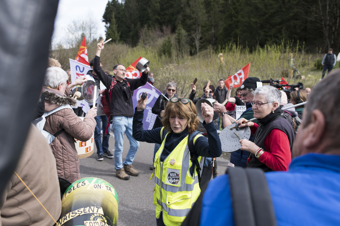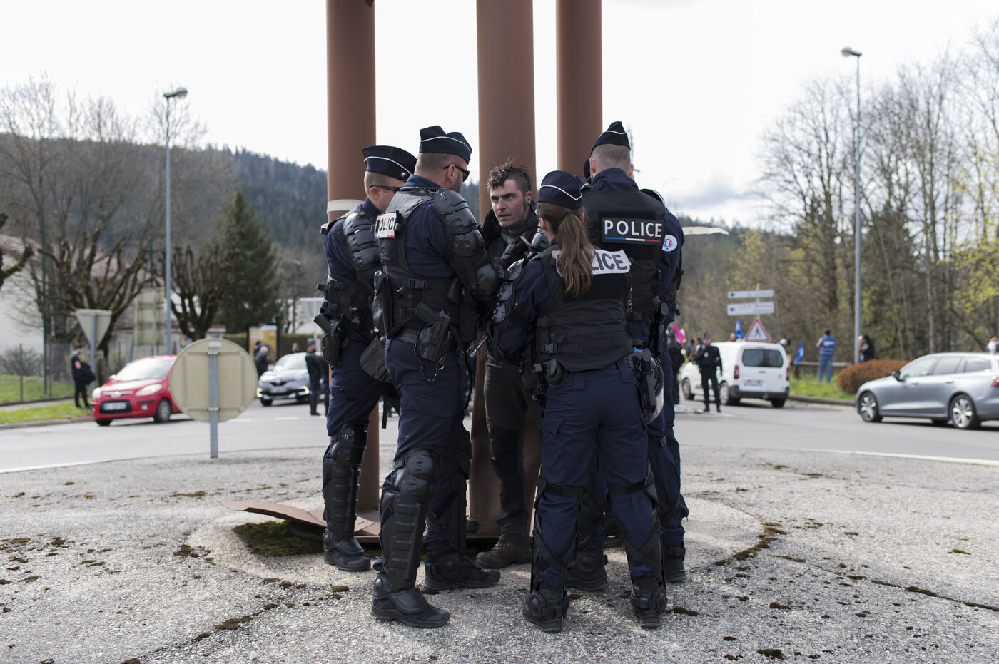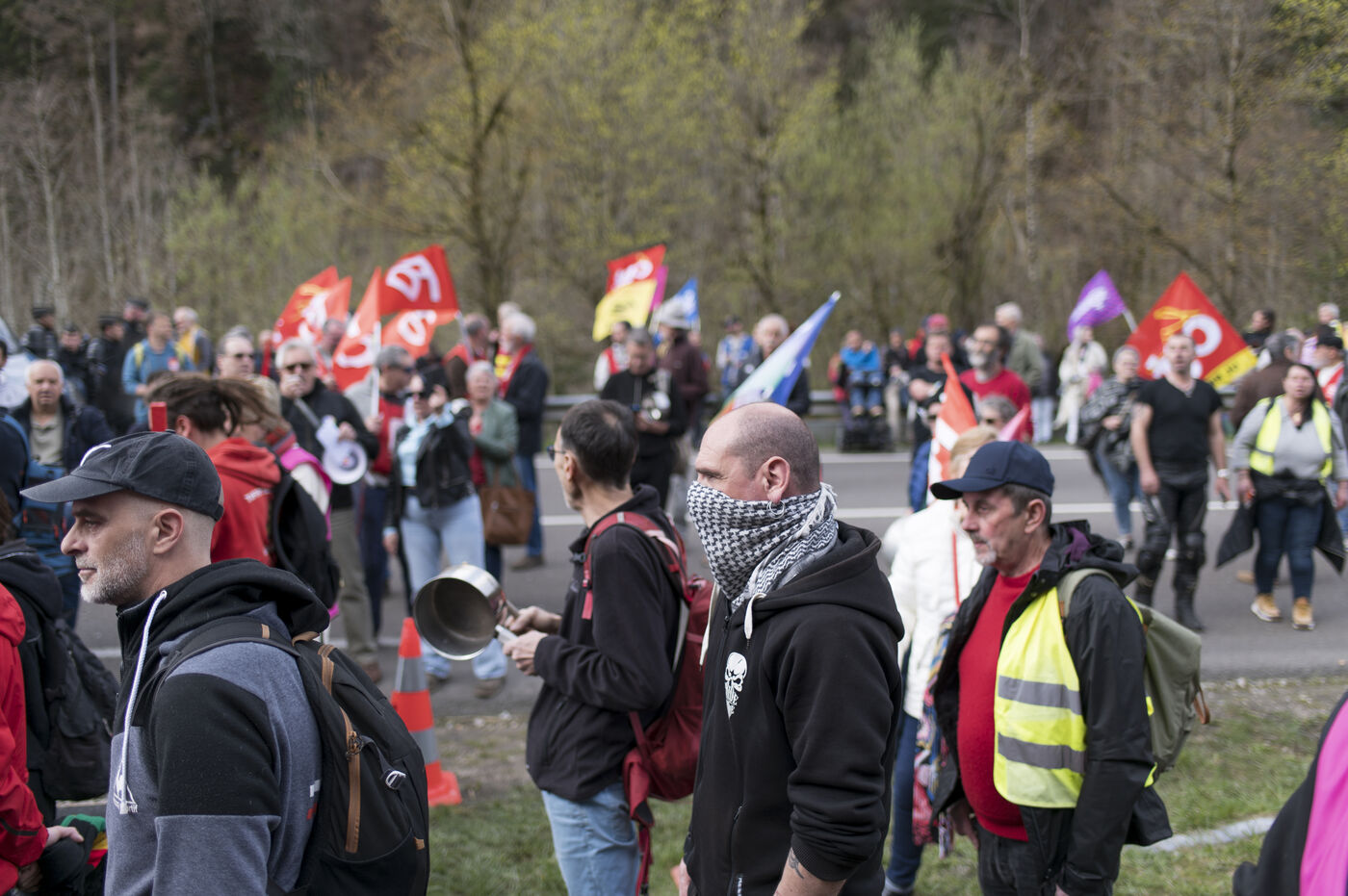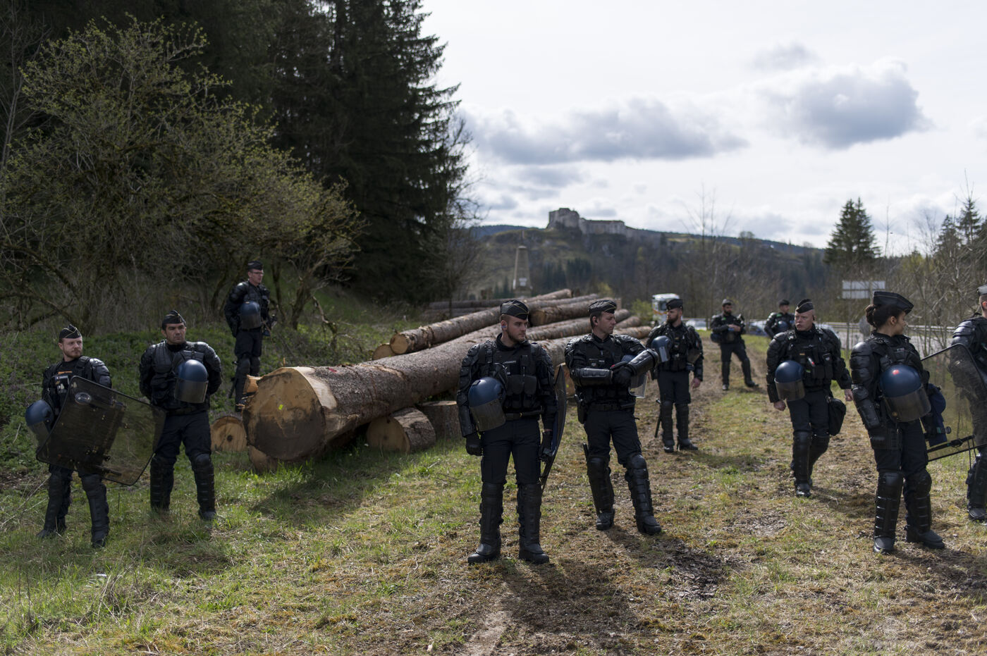 Jeudi 27 avril 2023, environ 300 personnnes se sont réunies non loin du chateau de Joux, dans le Haut-Doubs, là ou Emmanuel Macron a prononcer un discours pour commémorer les 175 ans de l'abolition de l'esclavage en France. Un fort dispotif policier quadriait toute la zone.