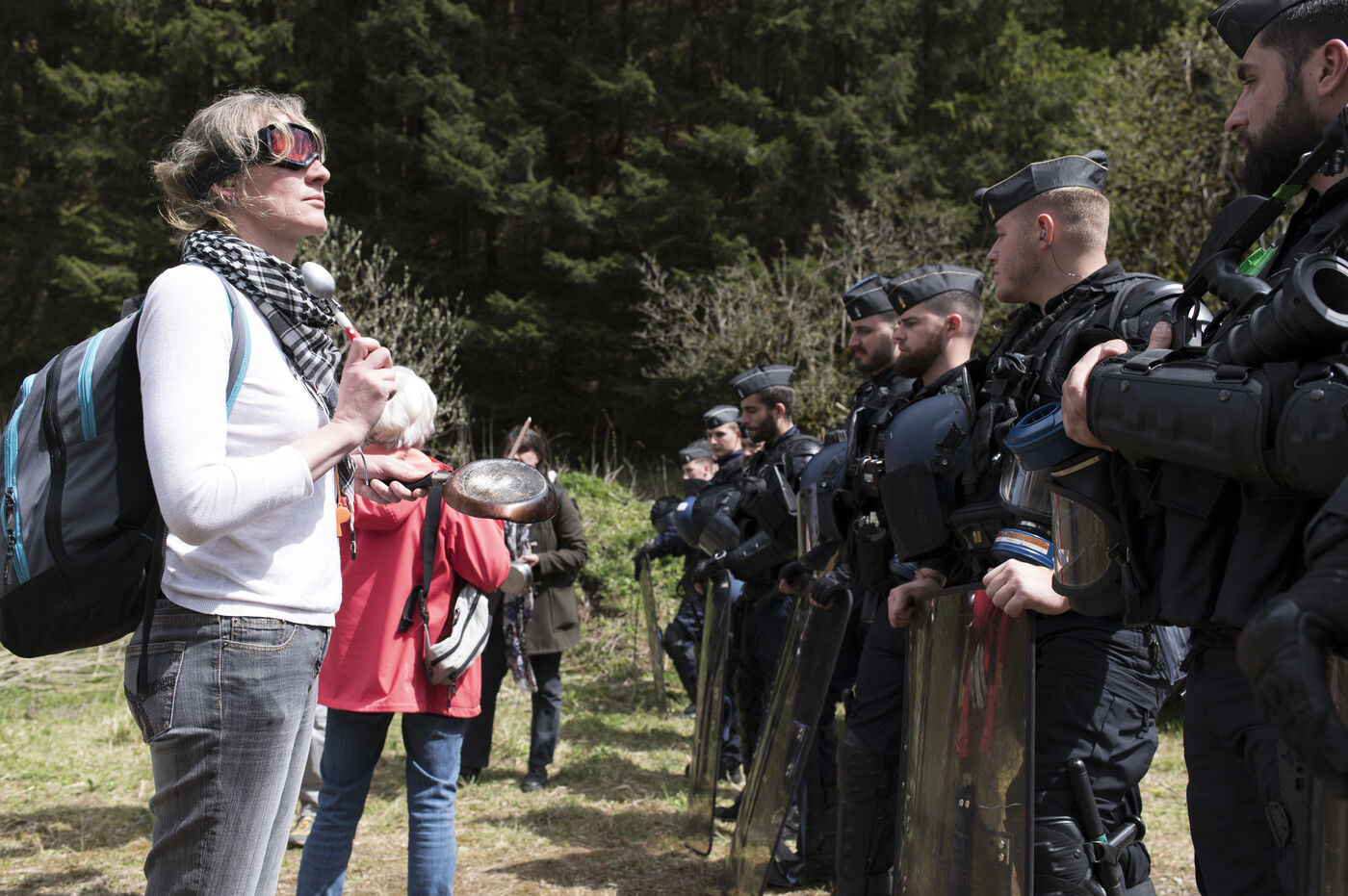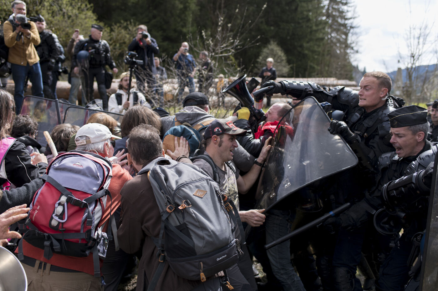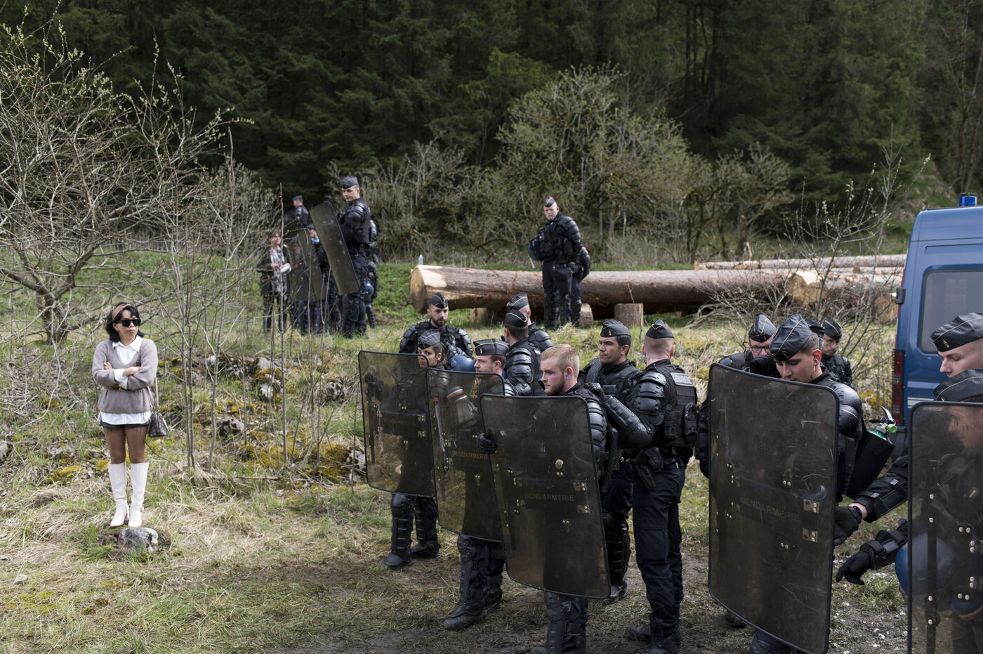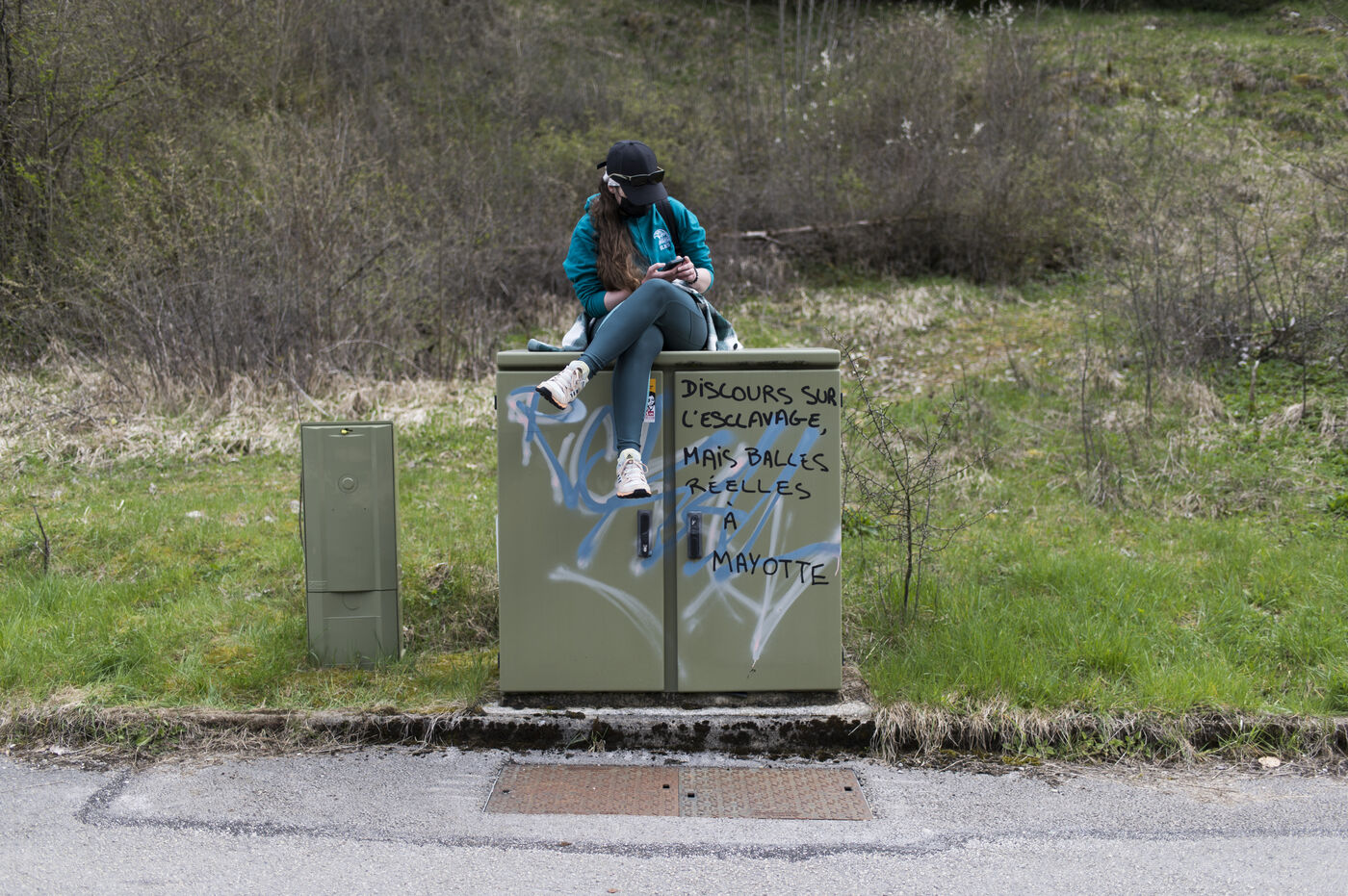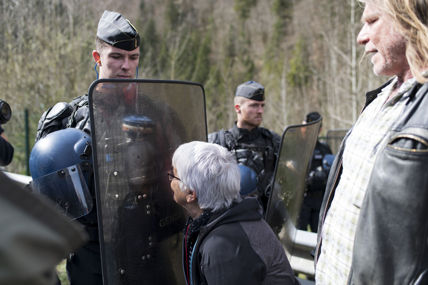 Jeudi 27 avril 2023, environ 300 personnnes se sont réunies non loin du chateau de Joux, dans le Haut-Doubs, là ou Emmanuel Macron a prononcer un discours pour commémorer les 175 ans de l'abolition de l'esclavage en France. Un fort dispotif policier quadriait toute la zone.
