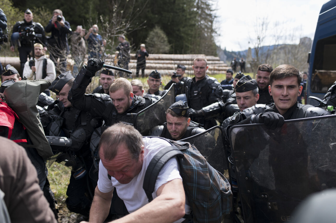 On Thursday, April 27, 2023, about 300 people gathered not far from the chateau de Joux, in the Haut-Doubs, where Emmanuel Macron gave a speech to commemorate the 175th anniversary of the abolition of slavery in France. A strong police dispotif squared the whole area.