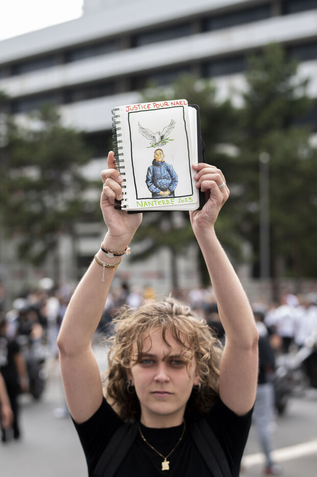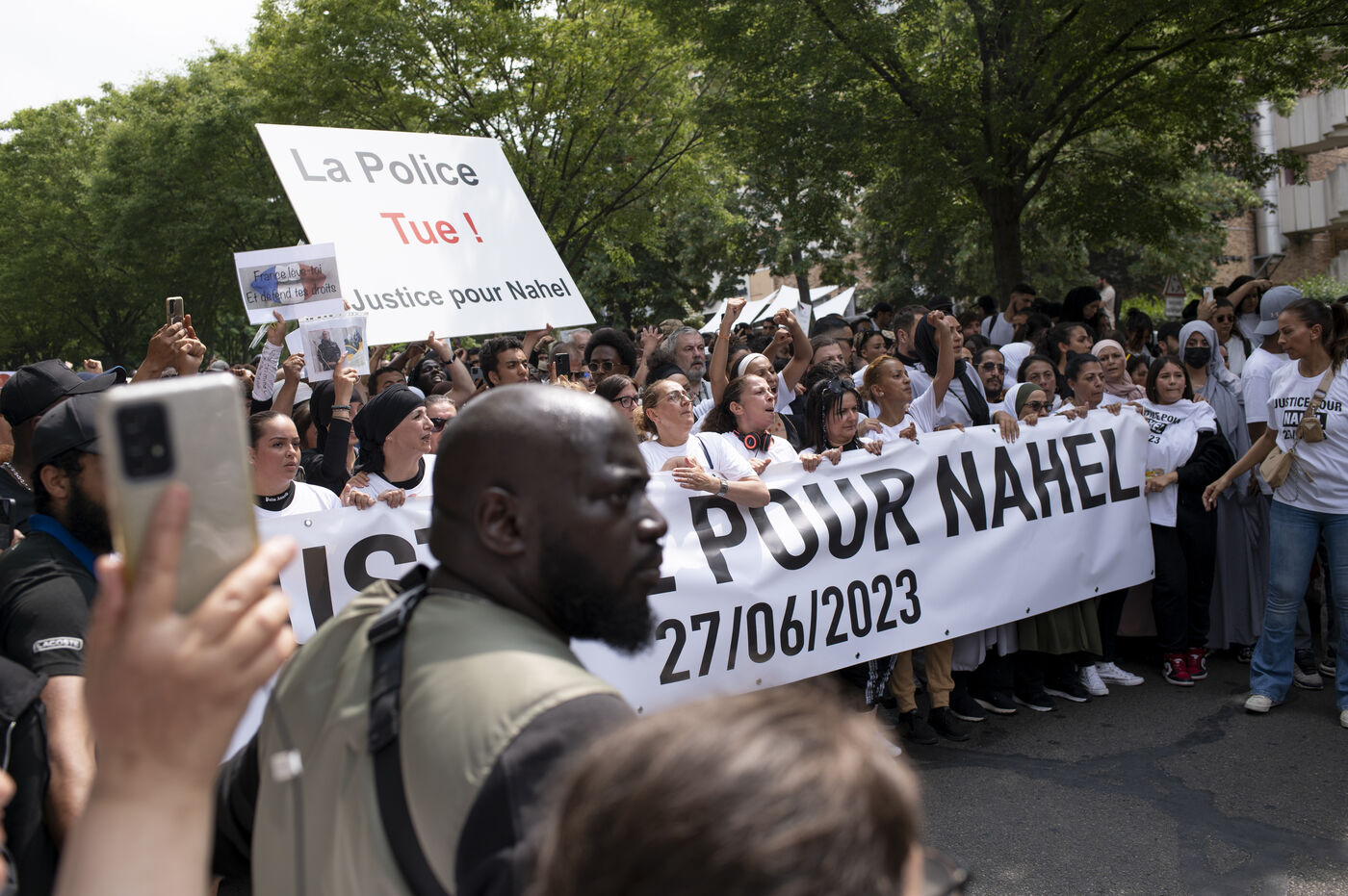 Following Nahel's death on 27 June 23, killed by a police bullet during a roadside check, a large white march was organised by his family and friends in his memory.