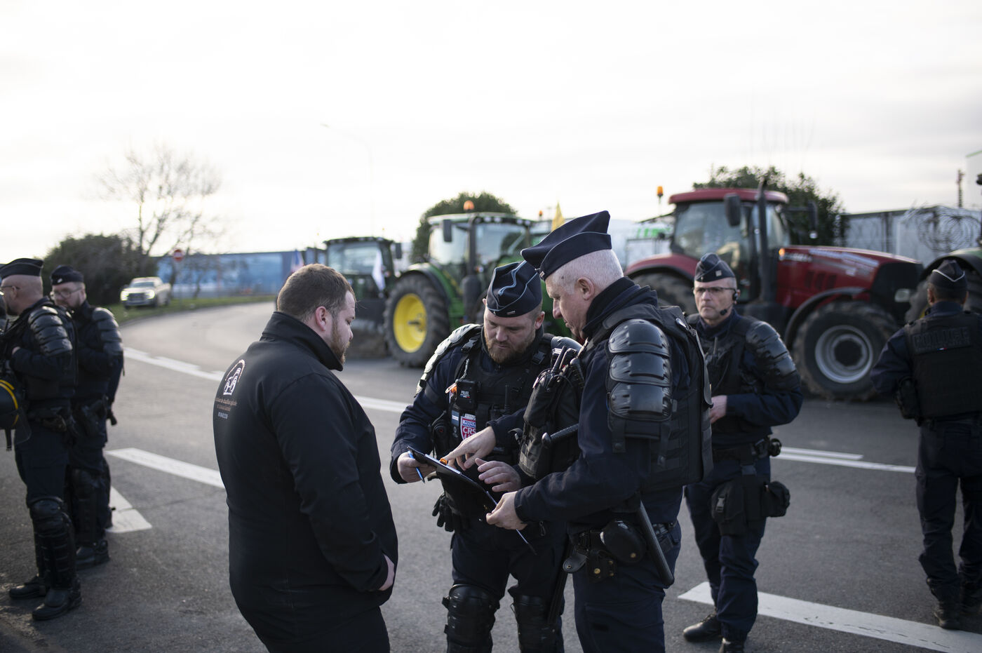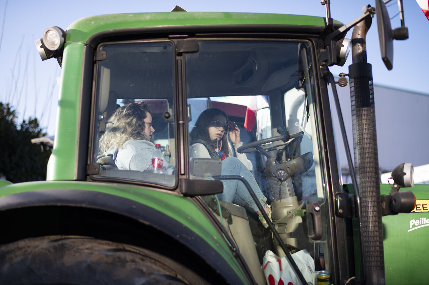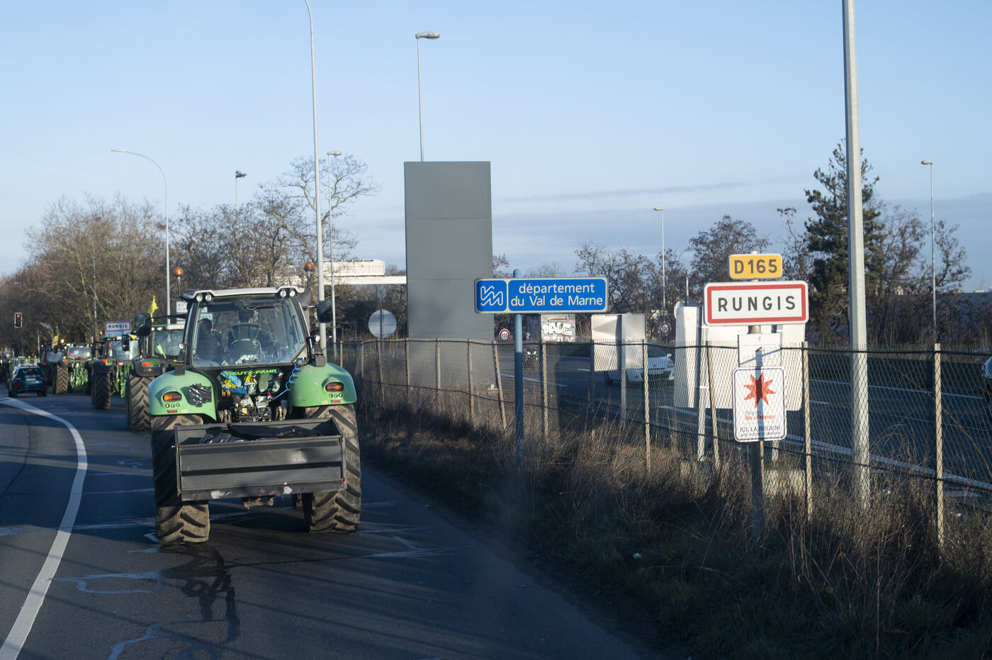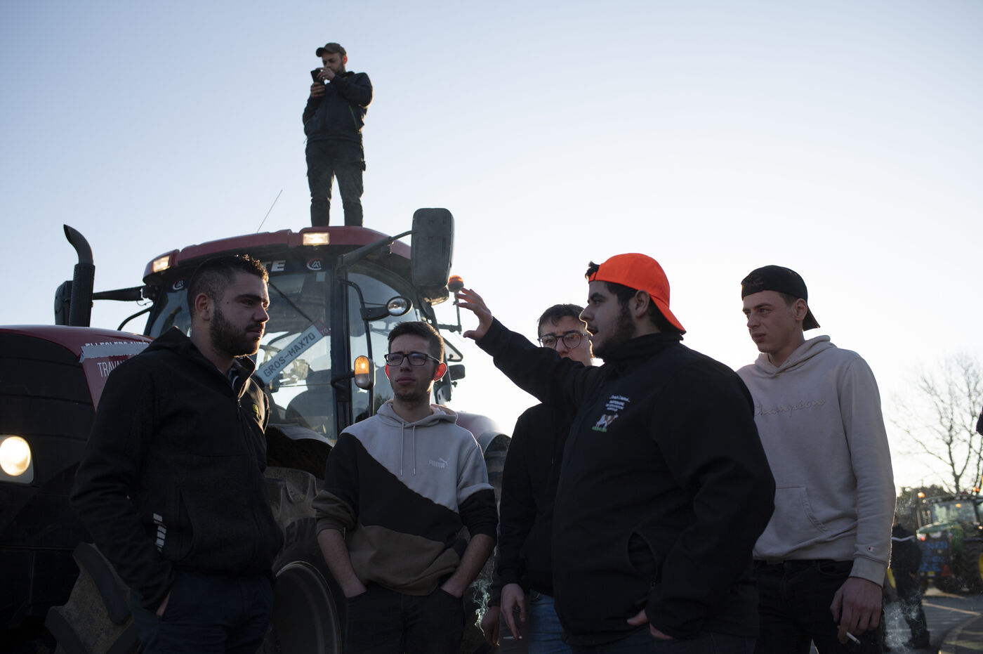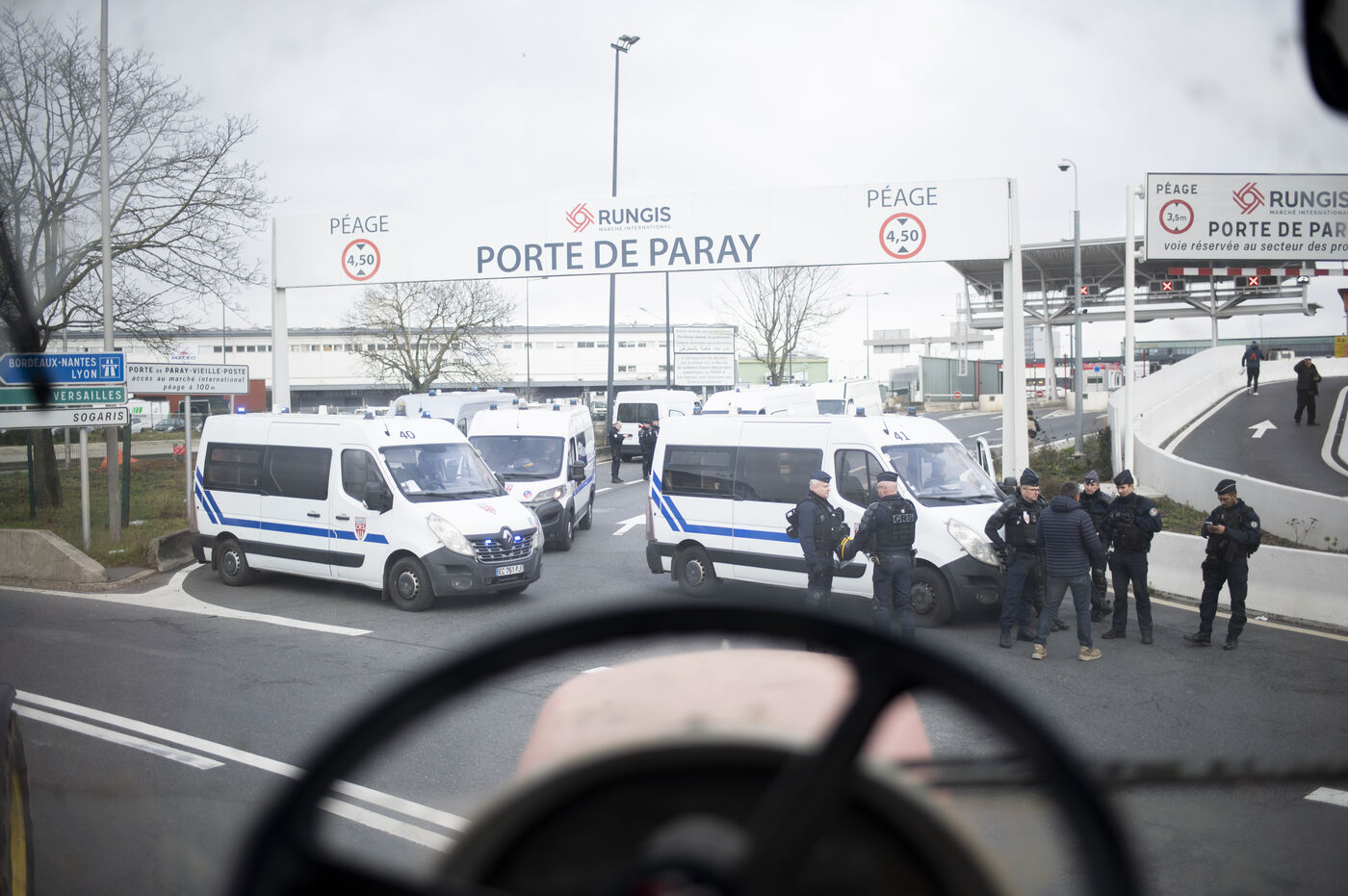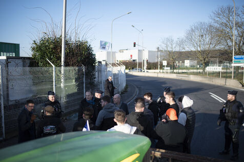 Des jeunes agriculteurs venus de Haute-Saone bloquent la porte de Paray a Rungis