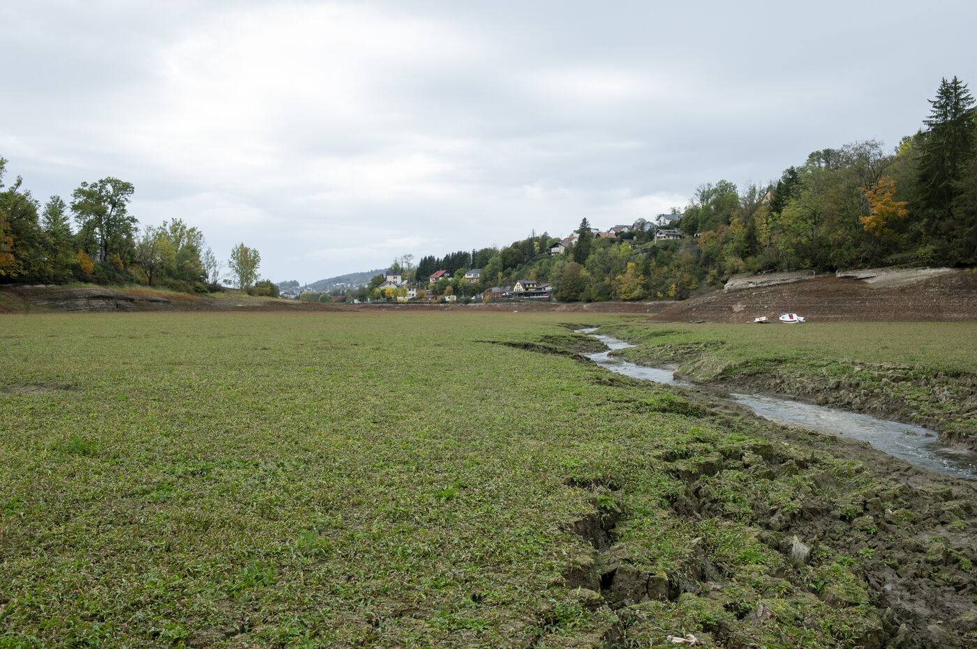 Following a particularly dry summer, by mid-October the Doubs was at its lowest. Classified as a Grande Site National and forming the border between Switzerland and France at Villers-le-Lac, the Saut du Doubs and its basins are not accessible to visitors by boat. The rock is bare, the boats have run aground or are moored, and the land vegetation has reclaimed its rightful place where under normal circumstances aquatic flora and fauna flourish. For several years now, this site has been the talk of the town in times of drought, as the images speak for themselves.