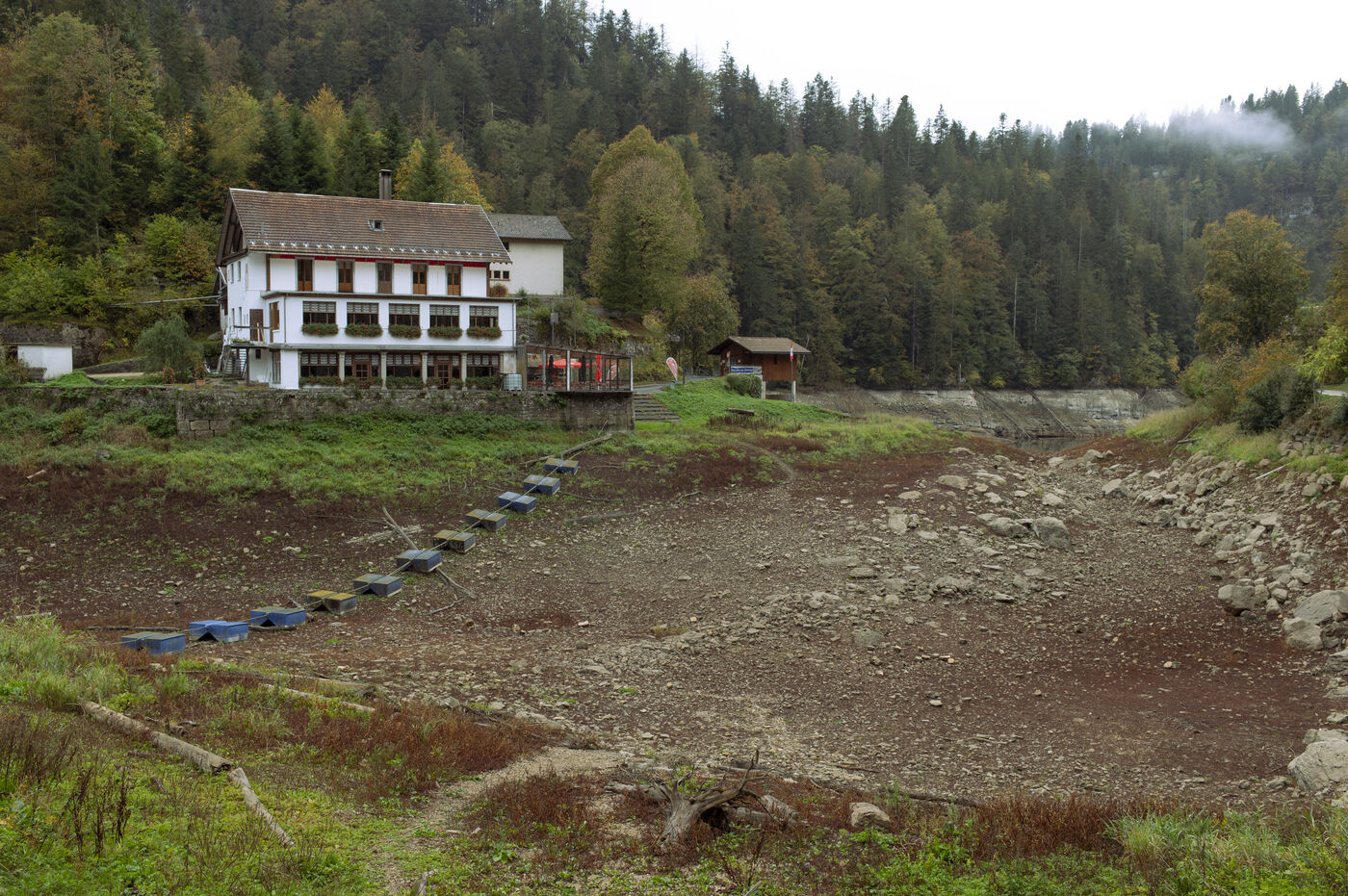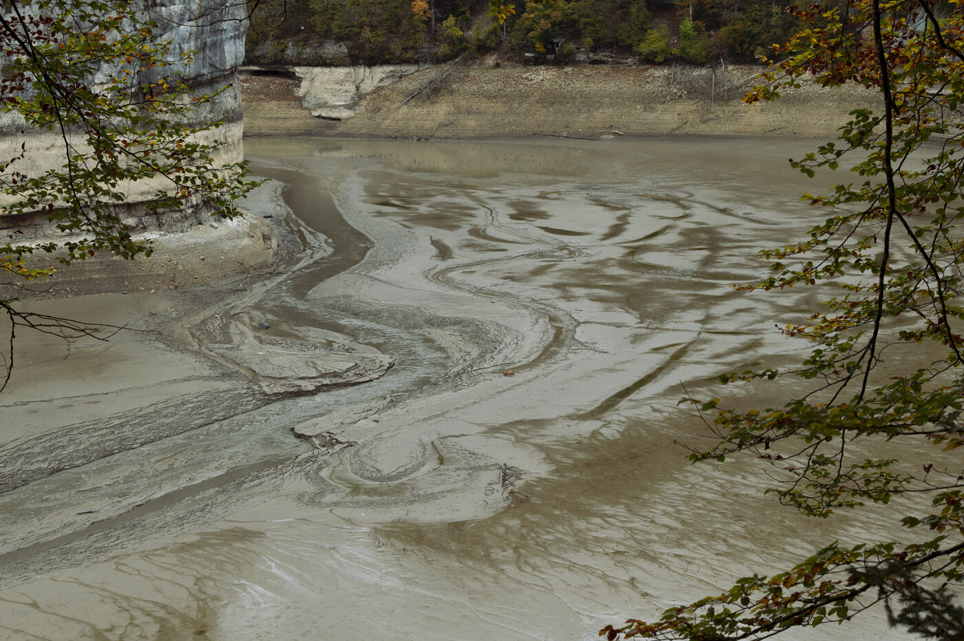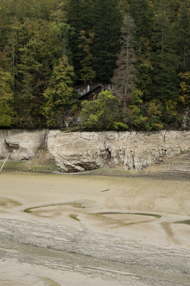 À la suite d'un été particulièrement sec, à la mi-octobre le Doubs est au plus bas. Classé Grande Site National et faisant frontière entre la Suisse et la France au niveau de Villers-le-Lac, le Saut du Doubs et ses bassins ne sont pas accessibles aux visiteurs par bateau. La roche est nue, les embarcations sont échouées ou à quai, la végétation terrestre a repris ses droits là où en temps normal la faune et flore aquatique s'épanouissent. Depuis maintenant plusieurs années ce site fait parler de lui en temps de sècheresse tant les images parlent d'elles-mêmes.