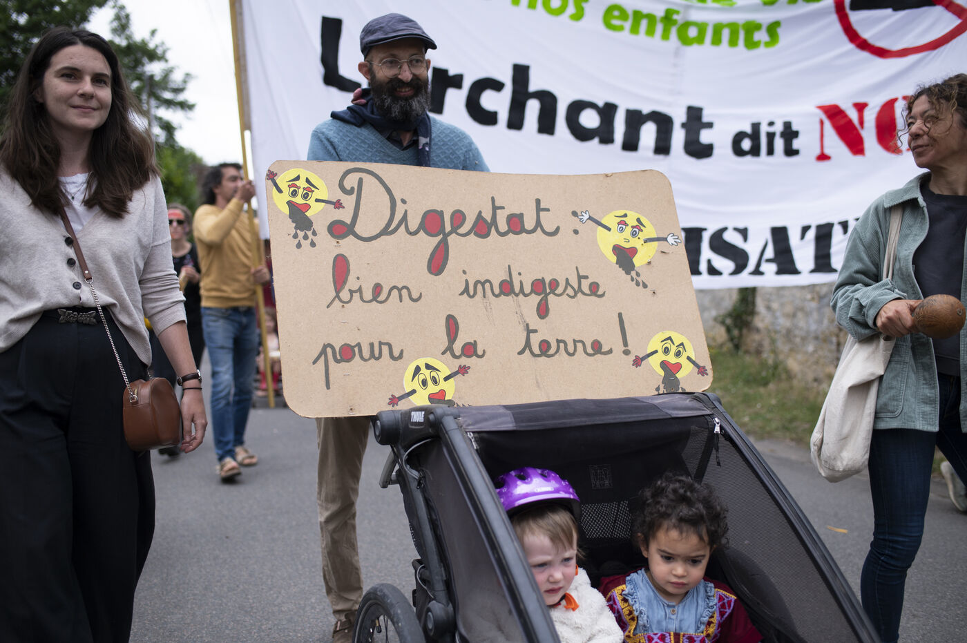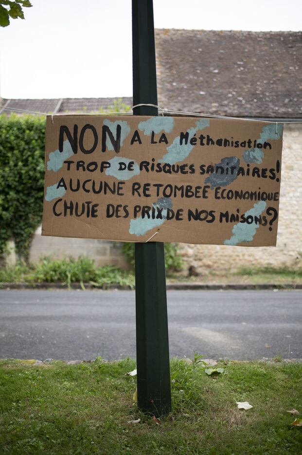 Since the discovery of this project by three local farmers, residents of the village and surrounding area have been fighting to prevent its construction. Numerous banners have appeared on the walls of some homes, several demonstrations have already taken place and legal action has been taken by the CDASL association. Those present fear that their lives will ultimately be affected by the plant, which is expected to process around 30 tonnes of inputs a day: unpleasant odours, increased road traffic, rising farmland prices, falling property values, impact on the surrounding biodiversity... They also denounce the lack of transparency surrounding the project and would have liked to have seen public consultations upstream.