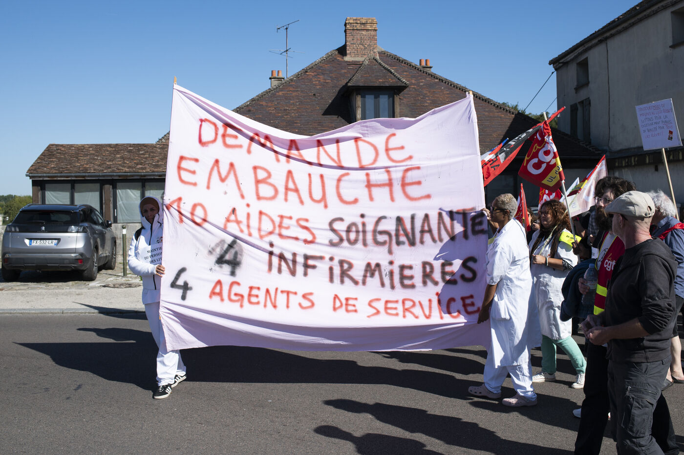 On the occasion of the inter-union day of action, following on from the ‘Bloquons tout’ movement launched on 10 September, around 250 people from Nemours and the surrounding area gathered to protest against the project promoted by E. Macron and his successive governments. The CGT and FSU unions organised a march between the STEF company, where ‘unfair dismissals’ are being denounced, and Place de la République. Teachers, hospital staff and workers from local factories and industries marched together before speeches were given at the end of the procession.