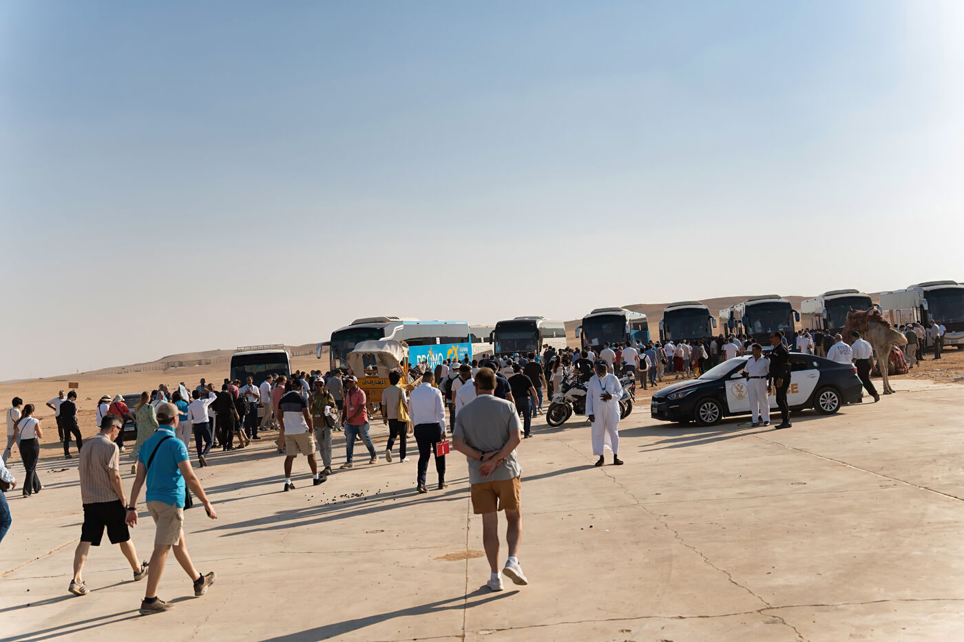 The Pyramids of Giza, Cairo's millenary jewels, attract dense crowds every day, transforming this historic marvel into an epicenter of mass tourism. After a long day on the bus, tourists disembark, immediately surrounded by camel-drivers waiting like vultures, ready to offer them walks at the foot of the pyramids.