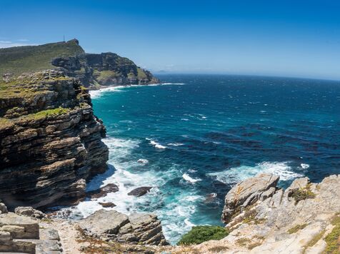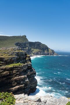 The Cape of Good Hope, nestled at the southernmost tip of South Africa's Cape Peninsula, offers an exceptional tourist getaway with its breathtaking scenery. Visitors can discover unspoilt nature, where the iconic lighthouse overlooks rugged coastlines and wilderness. Roaming the region, it's possible to observe a variety of wildlife, including mischievous monkeys and majestic ostriches, while exploring the rich ecosystem of the fynbos, famous for its many endemic species.