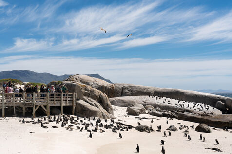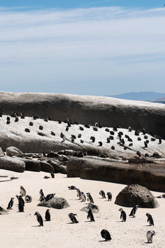 Nestled near Simon's Town, South Africa, Boulders Beach boasts imposing granite formations and stretches of fine sand, creating an ideal natural backdrop for the colony of African penguins that call it home. A favorite with photographers and nature lovers alike, the beach offers a close-up view of the penguins' daily behavior: from sunbathing and playing in the waves, to the constant vigilance of their parents over their nests. Accessible via walkways that protect both the privacy of the animals and the safety of visitors, Boulders Beach is a veritable open-air laboratory where the coexistence of man and wildlife offers scenes rich in emotion and natural beauty, captured through the lens of the cameras.
