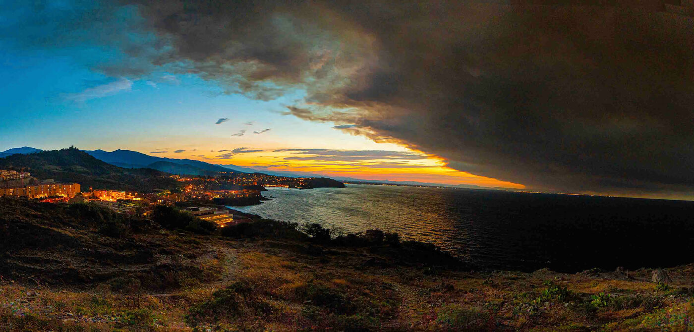 Depuis mardi 5 août, un incendie d’une ampleur exceptionnelle ravage les Corbières, dans l’Aude. Toujours actif ce mercredi 6, il a déjà détruit plus de 13 000 hectares et mobilise près de 1 900 pompiers. Le feu, qui a coûté la vie à une personne, progresse en direction de la mer. Son impressionnant panache de fumée, visible jusqu’à 100 km à la ronde et même depuis l’Espagne, a fortement marqué les esprits, notamment dans les Pyrénées-Orientales, de Barcarès à Collioure.