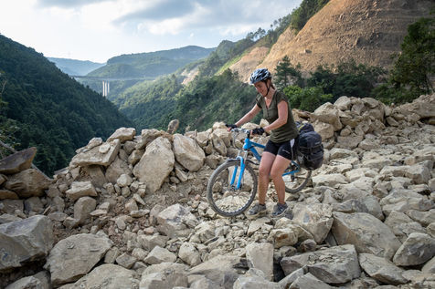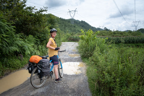 Once we found the bikes, we set off on the roads, starting with Guizhou, a very hilly region that is currently undergoing rapid development. Roads, bridges and tunnels are being built all over the region. We drove through many roads under construction, surrounded by trucks and construction equipment. On one occasion, an excavator even helped us over a rockfall, otherwise we would have had to make a diversion of over 100 km.