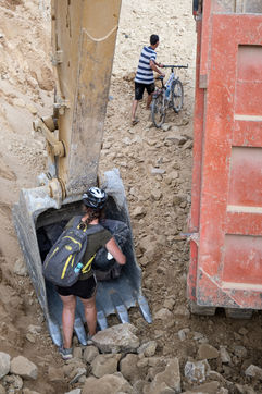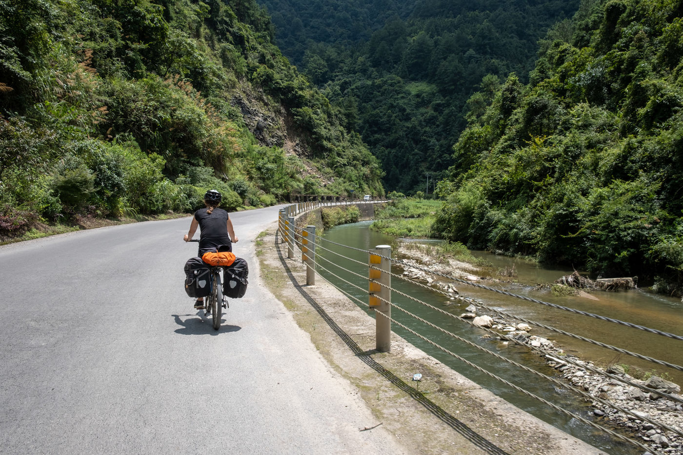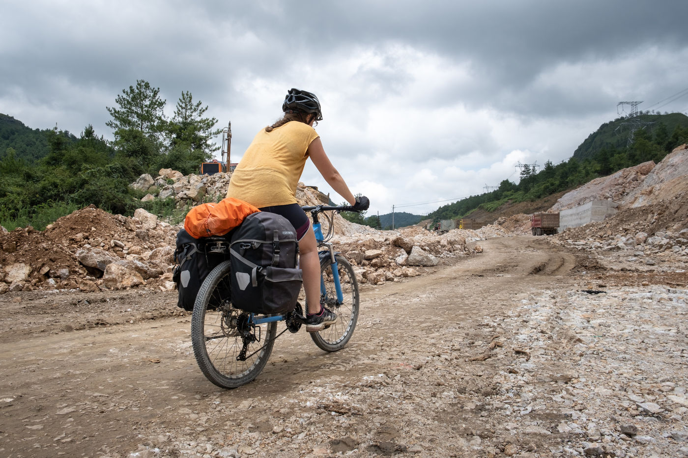 Une fois les vélos trouvés, nous voici parti sur les routes, en commençant par le Guizhou, une région très vallonnée dont le développement est fulgurant actuellement. Des routes, ponts et tunnels sont en construction partout dans la région. Nous avons traversé de nombreuses routes en construction, au milieu des camions et engins de chantier. Un jour une pelleteuse nous a même aidé à franchir un éboulis, sans cela nous aurions dû faire un détour de plus de 100 km.