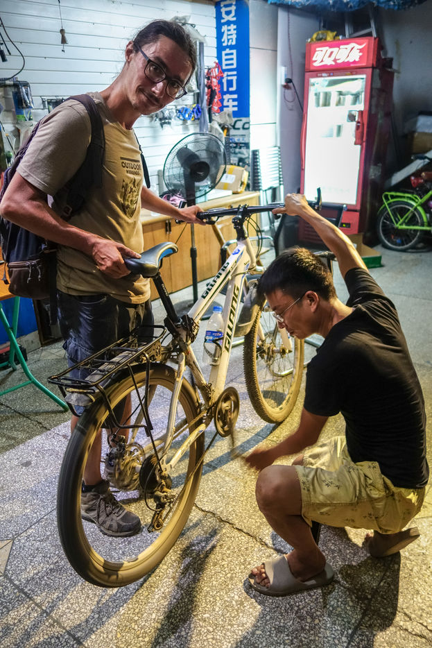 It was very difficult to find a bike shop, and even more difficult to find a bike suitable for our trip. Communication problems did not facilitate this adventure. Indeed, in the two chosen regions, Guizhou and Guangxi, English is almost non-existent. Only the children know two words of English learned at school. This didn't prevent us from meeting nice people.