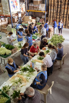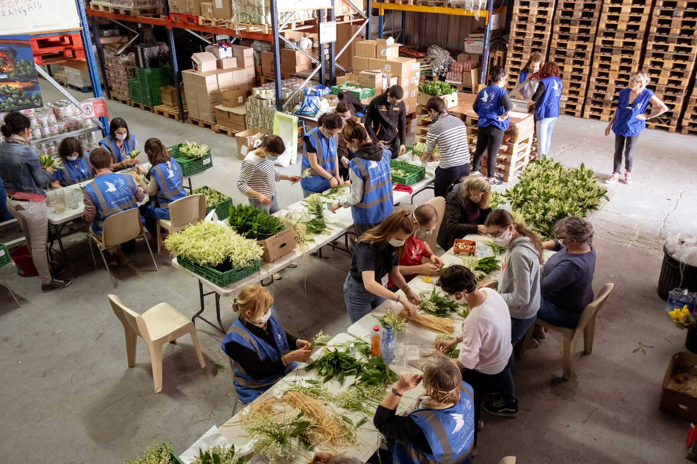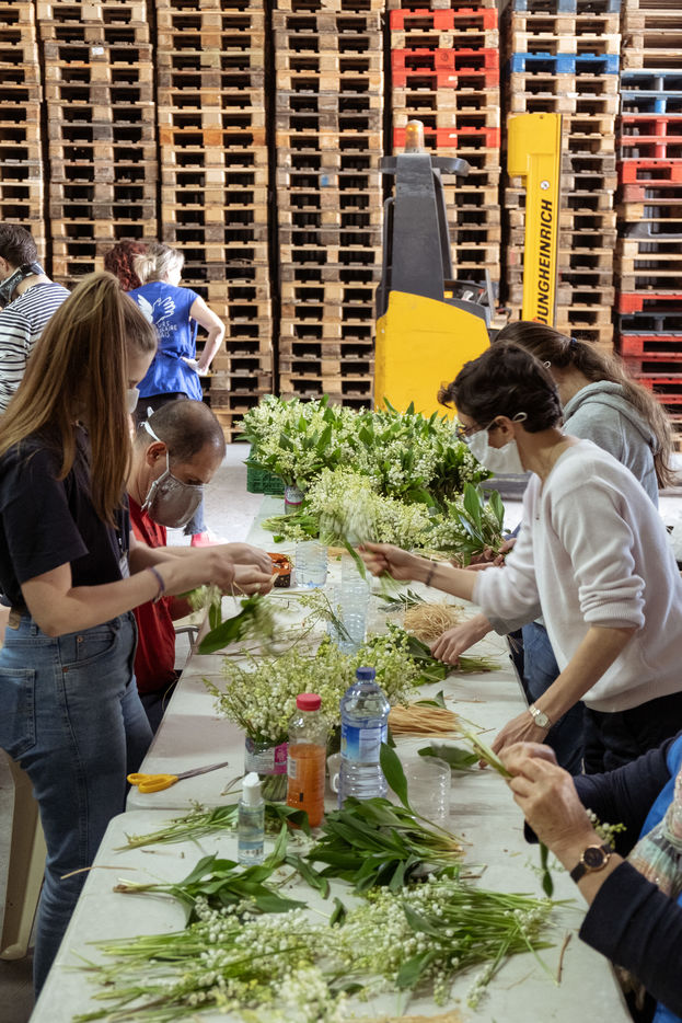 Secours Populaire de Toulouse received lily from the valley from producer Maud Thierry, following a donation campaign launched on the internet (muguet solidarite). A whole team of volunteers is busy preparing more than 3,000 bouquets, which will be handed over to the retirement homes the next day, both for residents and nursing staff. A burst of generosity in the midst of a coronavirus epidemic. Toulouse, April 29, 2020.