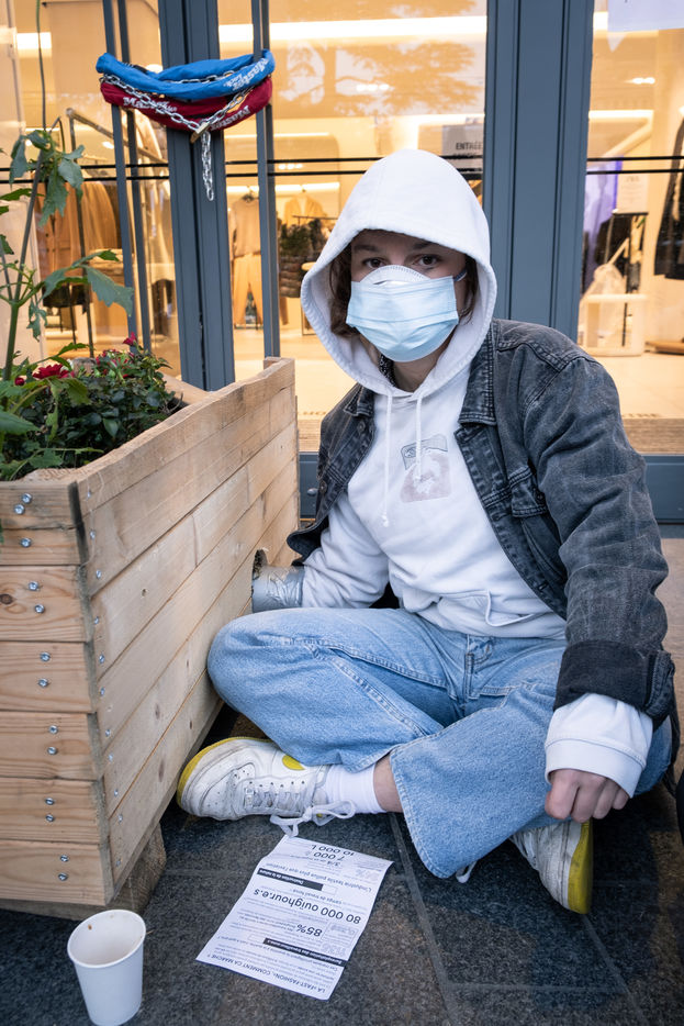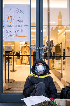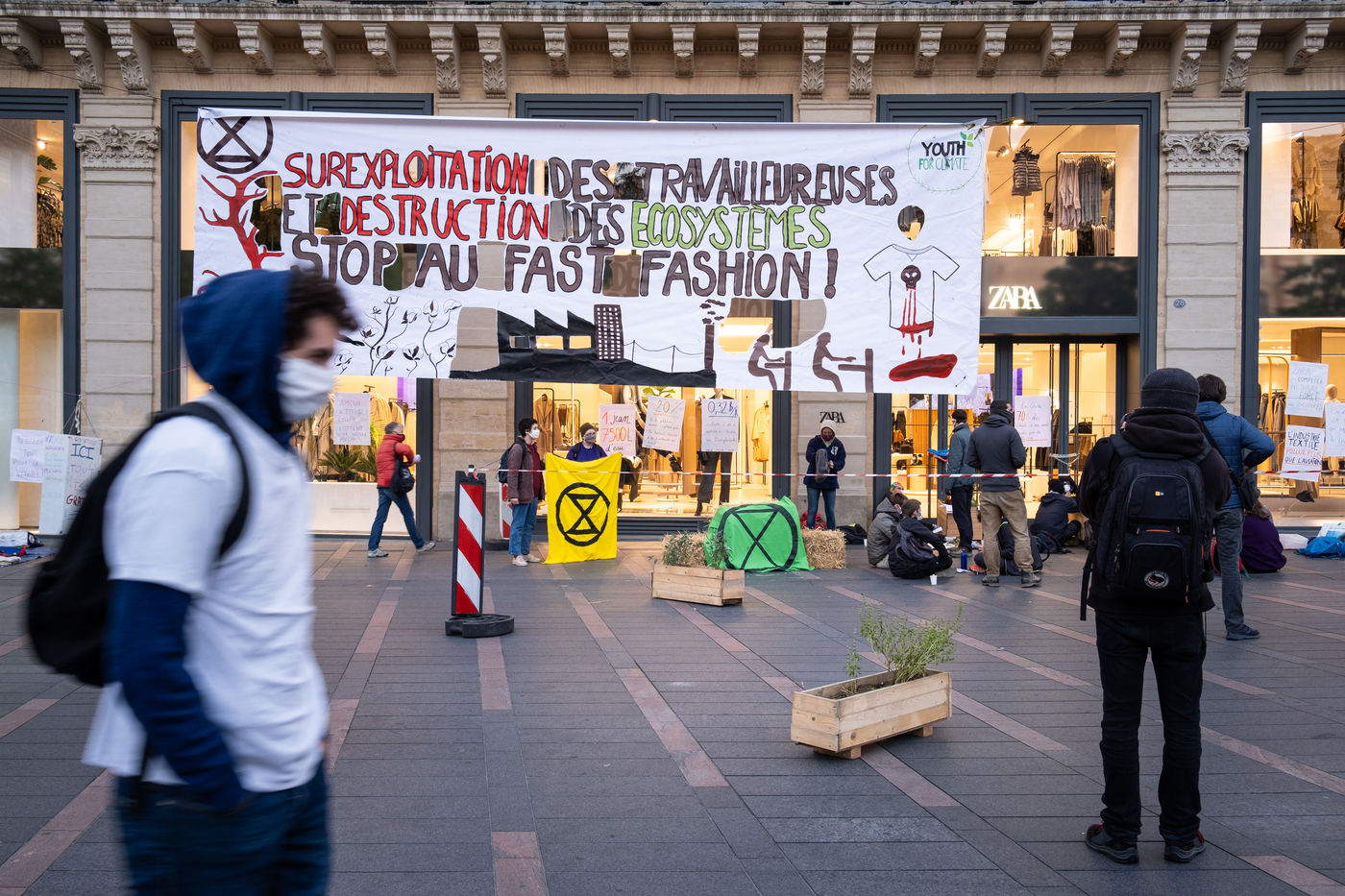 The activists of Extinction Rebellion and Youth for Climate in Toulouse blocked the Zara store in the Capitole throughout the morning. They demonstrate against fast fashion and its environmental and social impact in the world.