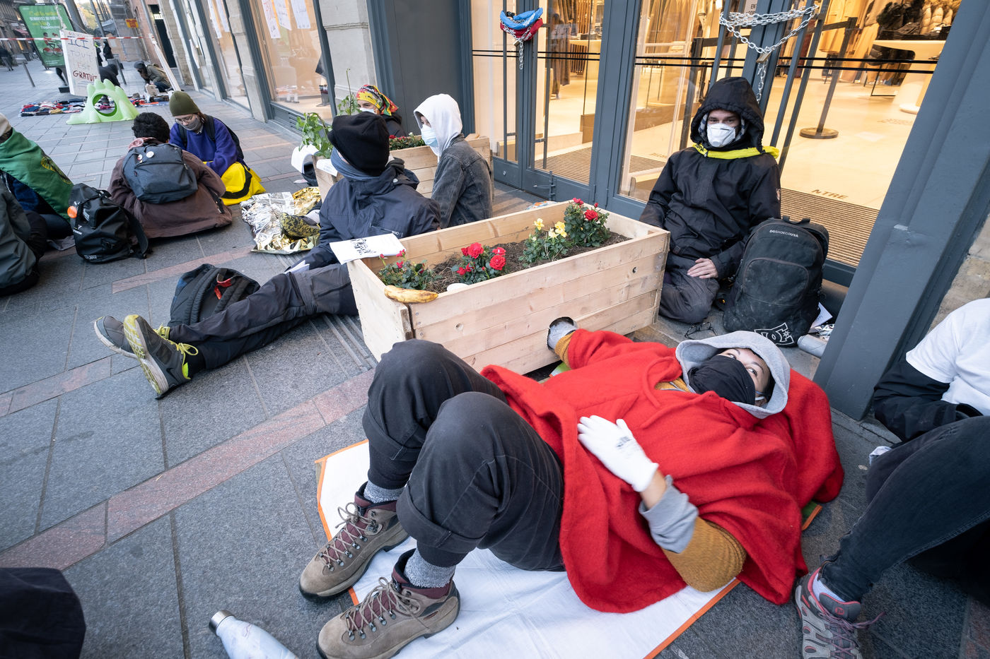 Les militants d'Extinction Rebellion et de Youth for Climate de Toulouse ont bloque le magasin Zara du Capitole pendant toute la matinée. Ils manifestent contre la fast fashion et son impact environnemental et social dans le monde.