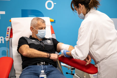 Le Toulouse Football Club (TFC) est venu soutenir la Maison du Don de Toulouse afin de promouvoir le don de sang, en particulier en cette période compliquée où moins de personnes vont donner. Les joueurs ne pouvant pas donner leur sang afin de ne pas compromettre leur condition physique, c'est une partie du staff qui est venu donner son sang. Toulouse, 7 janvier 2021.