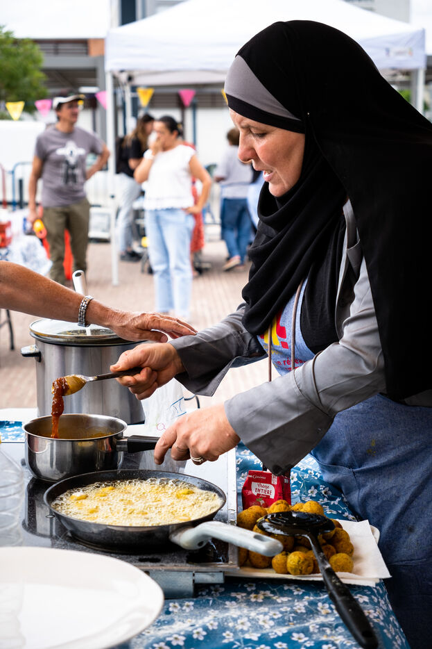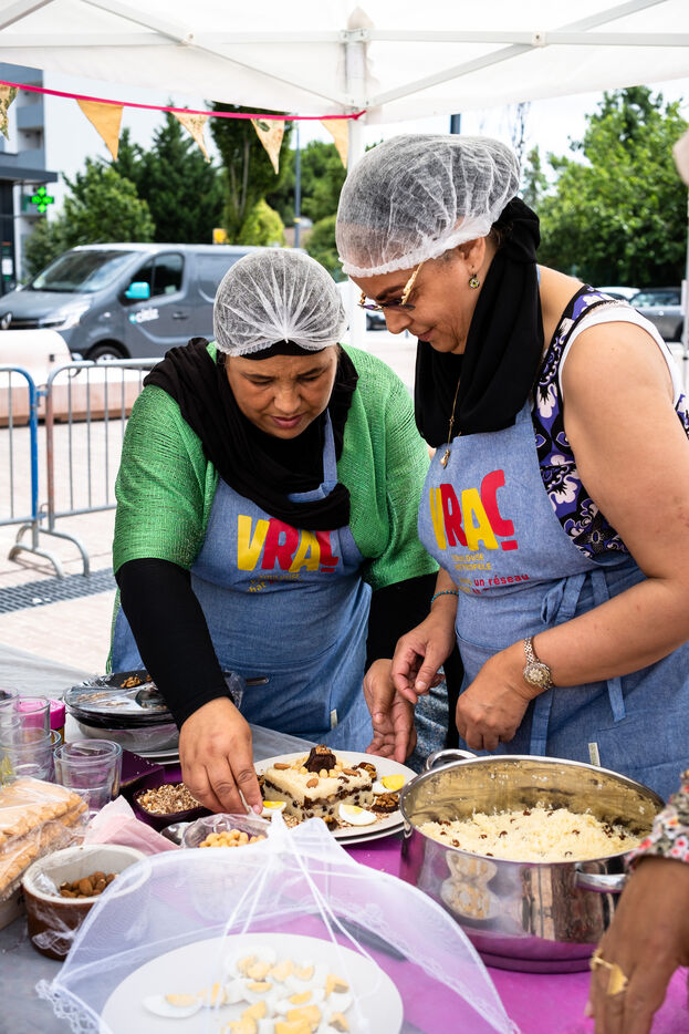 Sur la place Ahmed Chenane des Izards, un des quartiers prioritaires de la ville de Toulouse, un concours culinaire est organisé à destination des habitants pour promouvoir une alimentation seine et équilibrée. L'association VRAC (Vers un Reseau d'Achat en Commun) fait partie des organisateurs.