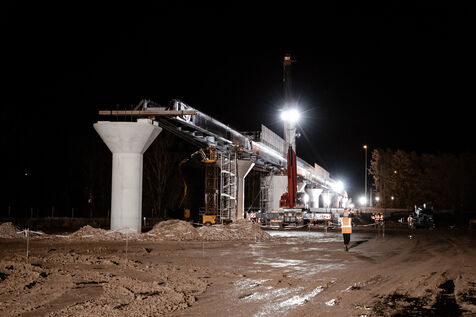 Work on the third metro line in Toulouse: night-time launching of the viaduct