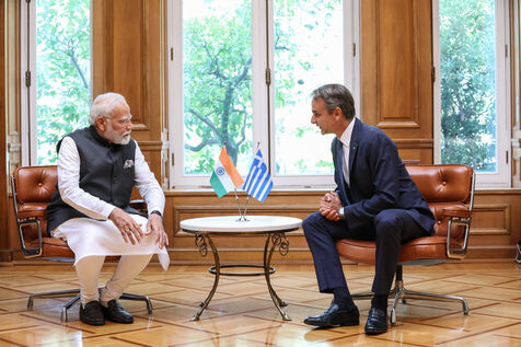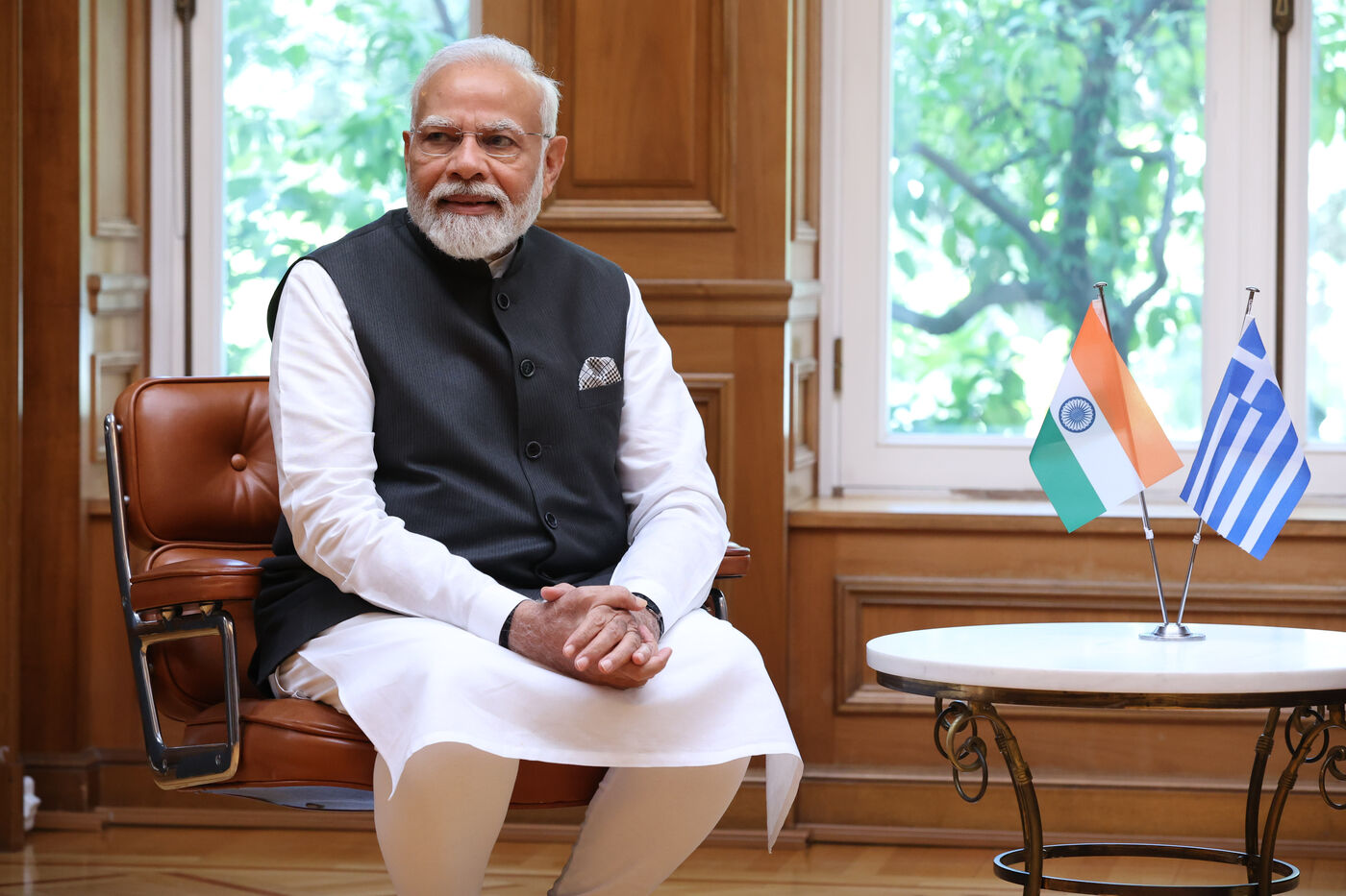 Meeting of Prime Minister Narendra Mondi with his Greek counterpart, Kyriakos Mitsotakis.