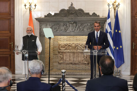 Rencontre du Premier Ministre Narendra Mondi avec son homologue grec, Kyriakos Mitsotakis.