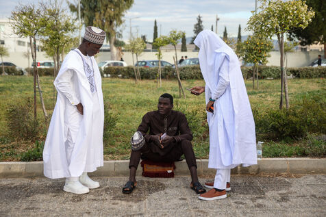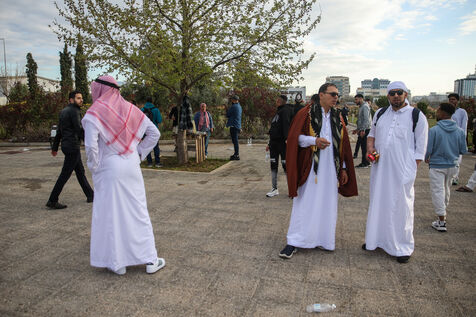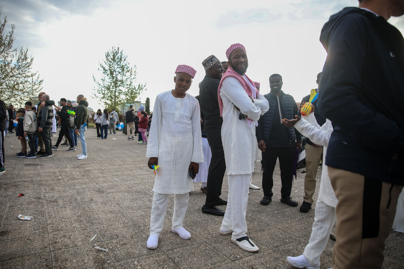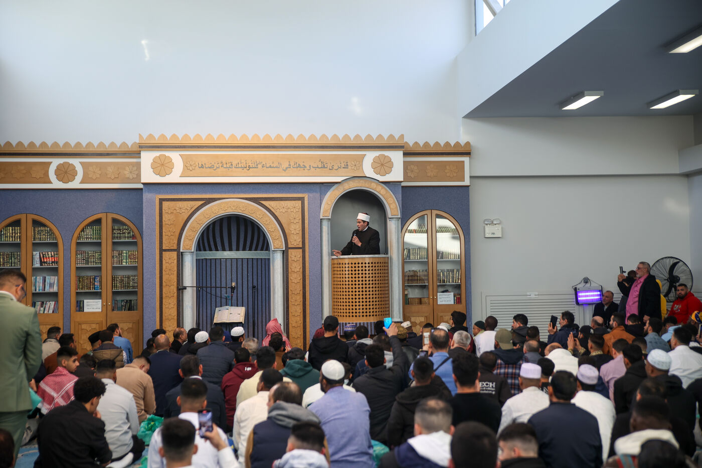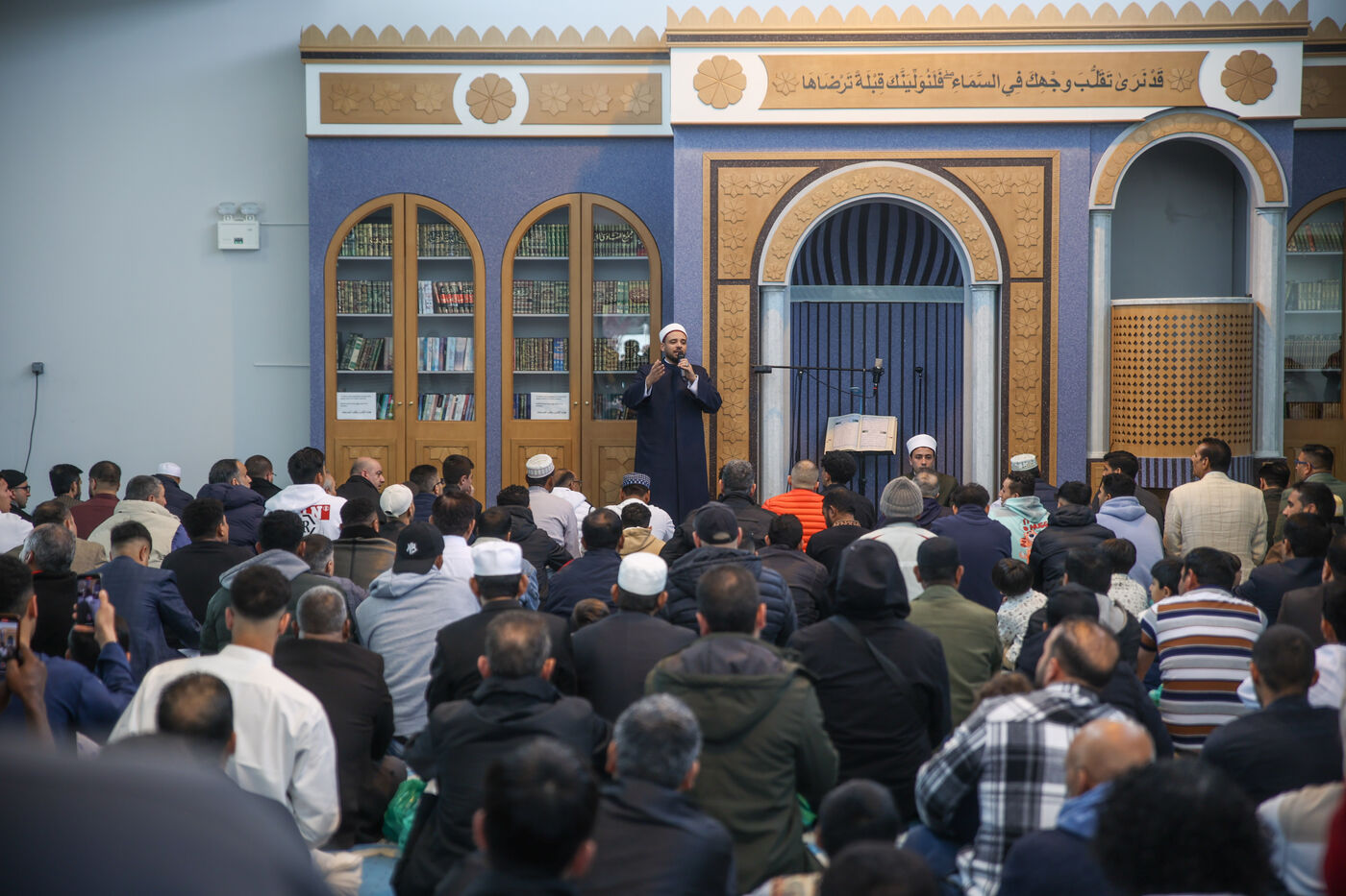 Les musulmans prient pendant la celebration de l Aïd al-Fitr, marquant la fin du jeûne d'un mois du Ramadan, de l'aube au coucher du soleil, pour l'une des plus grandes fêtes du calendrier islamique, à la mosquée Centrale d'Athènes, à Votanikos le 30 Mars 2025