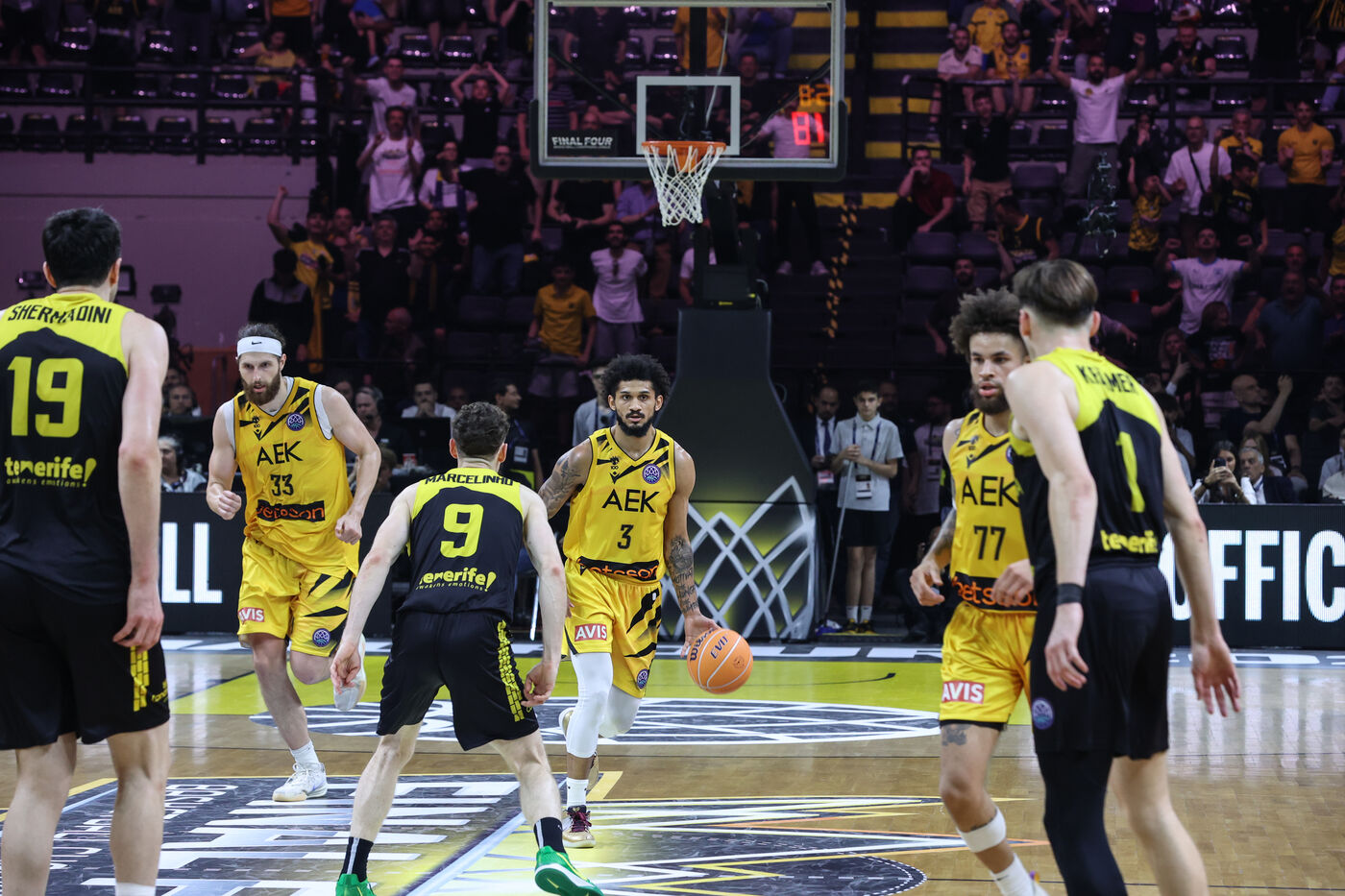 Match between AEK and Laguna Tenerife for the Final Four of the Basketball Champions League, in Athens, on May 11, 2025. The winner of the match was AEK, winning 3rd place in the BCL 2025.
