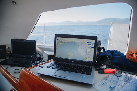 Observation et suivi des cétacés en Corse, lors de la mission TURSMED2 à l'automne 2023 avec l'association Miraceti, qui œuvre pour la protection des cétacés en Méditerranée.